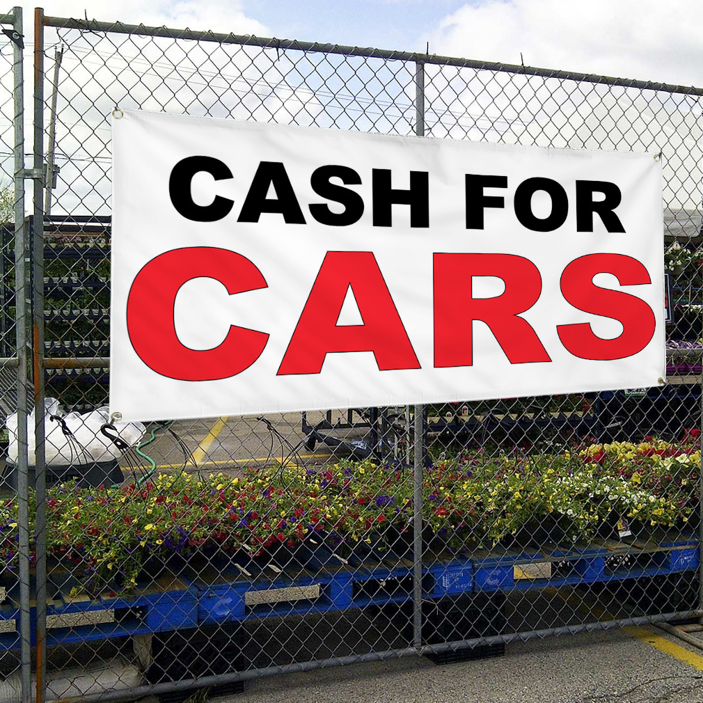 Vinyl Banner Multiple Sizes Cash for Cars Black Red Business Outdoor