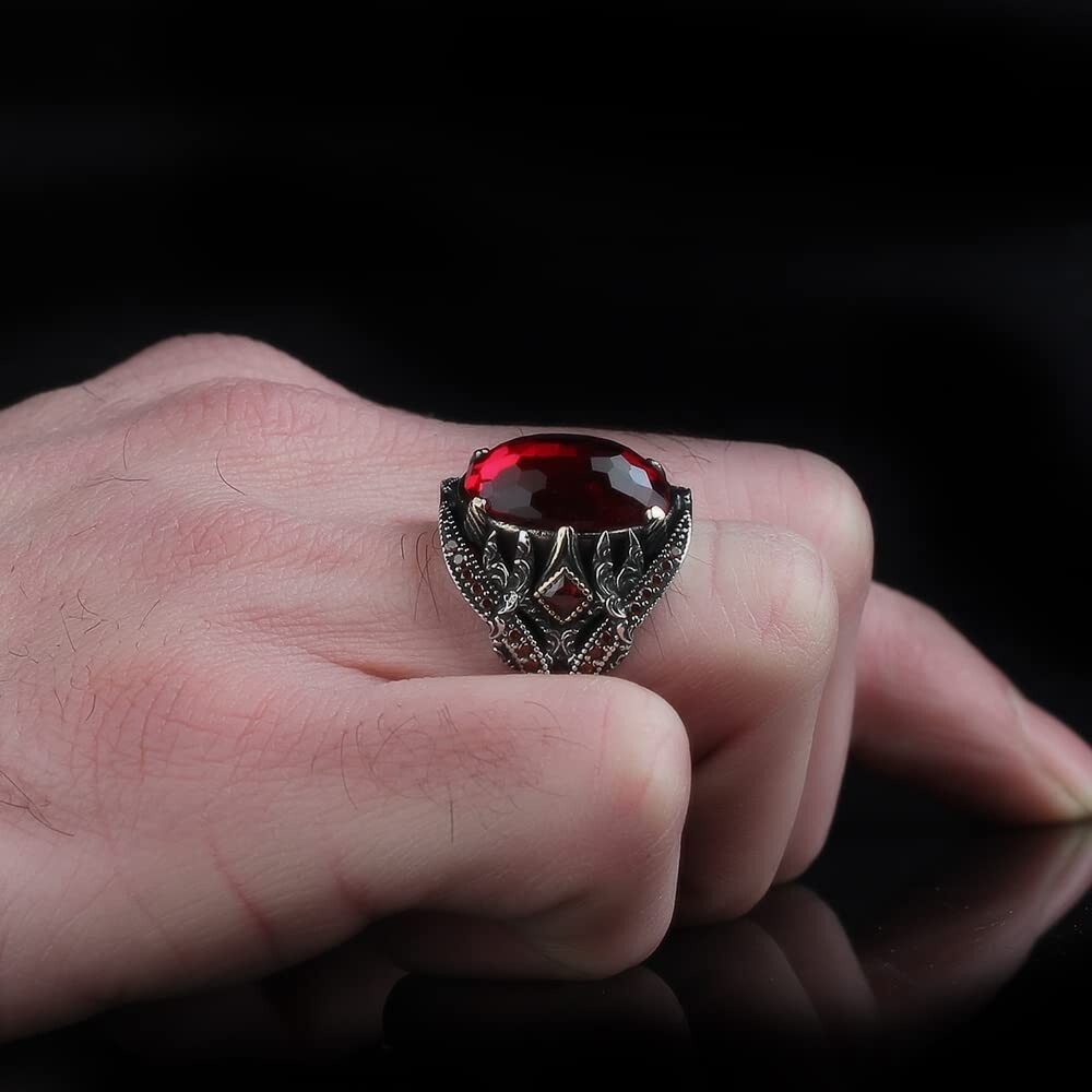 925 Sterling Silver Men's Ring, Garnet GemStone Men Silver Ring, Handmade Ring