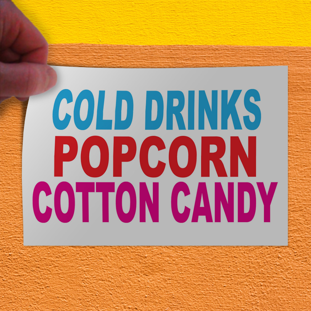 Decal Stickers Cold Drinks Popcorn Cotton Candy Blue Pink Food Restaurant Vinyl