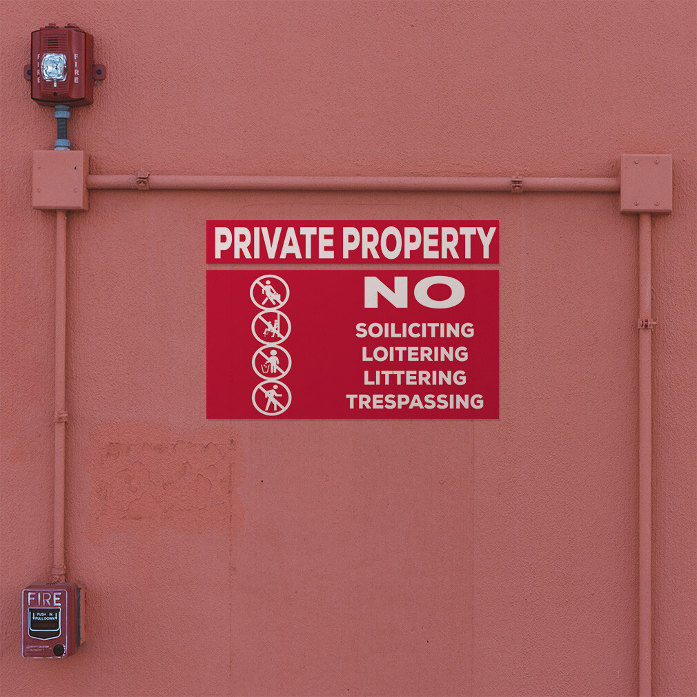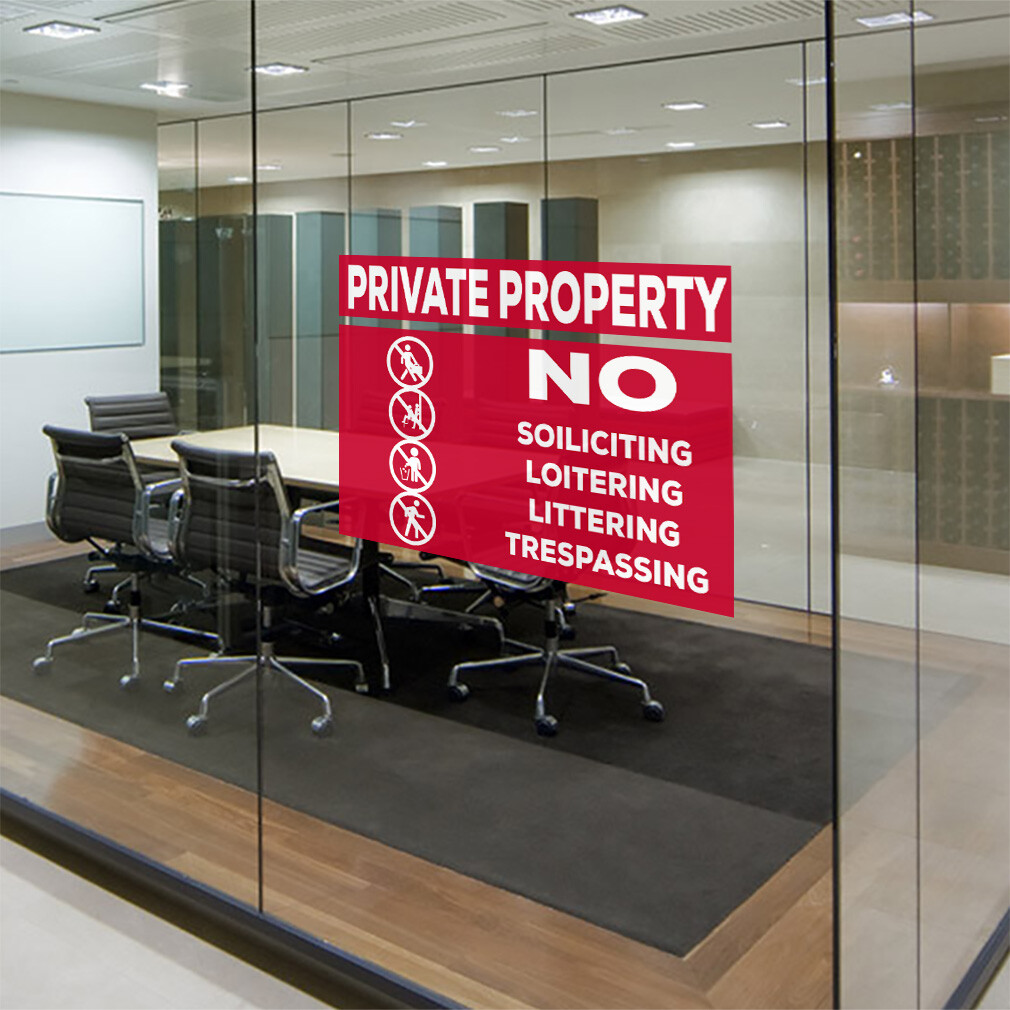Horizontal Vinyl Stickers Private Property No Soliciting Loitering Littering