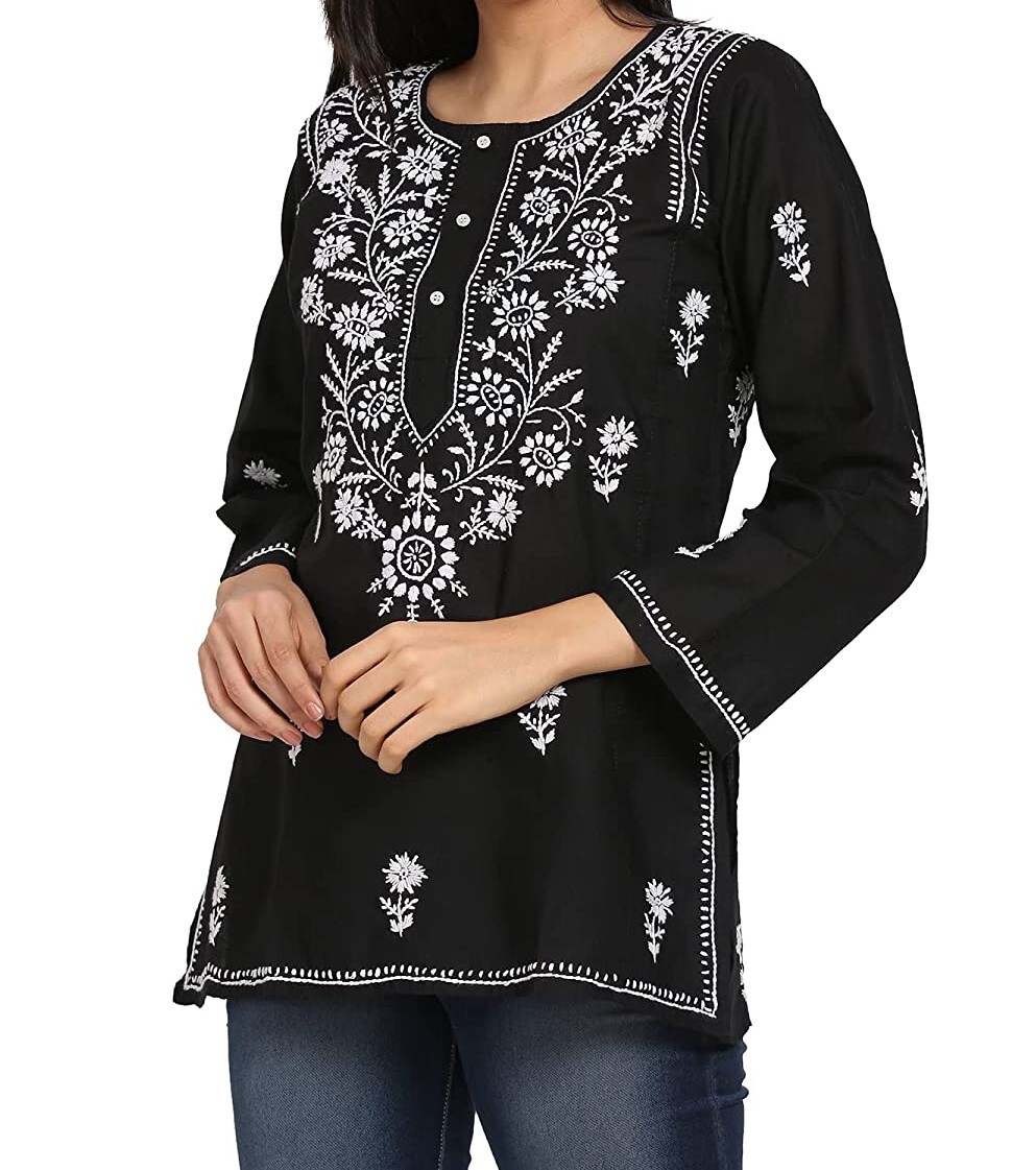 как выглядит Indian Chikan Embroidered Women