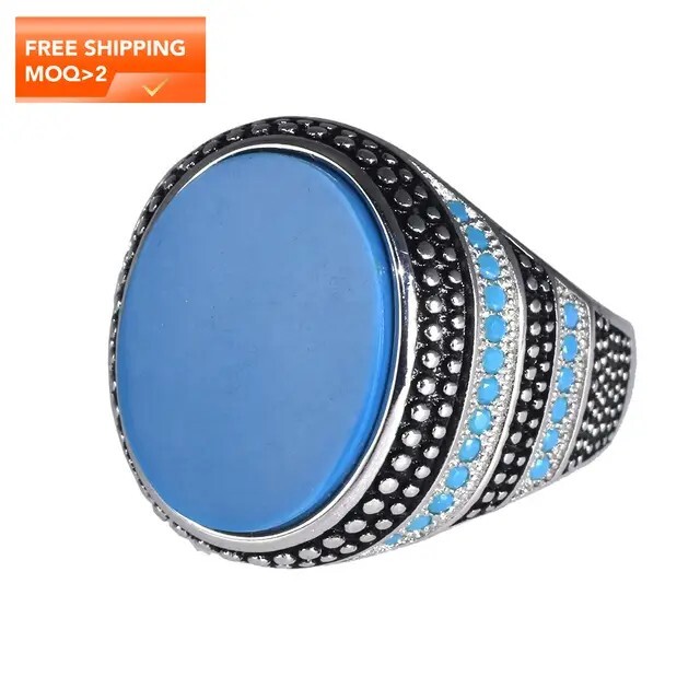 Valentine Love Gift, 925 Sterling Silver, Stone Simulated Turquoise, mens'