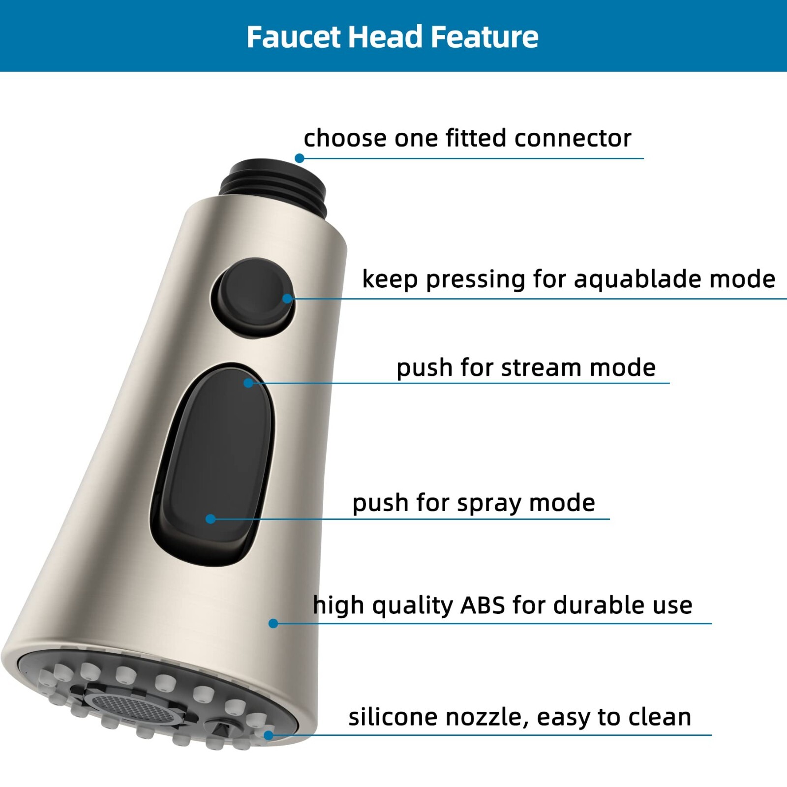 Pull Down Kitchen Faucet Head Replacement with 12 Adapter Kit 3 Function Brushed