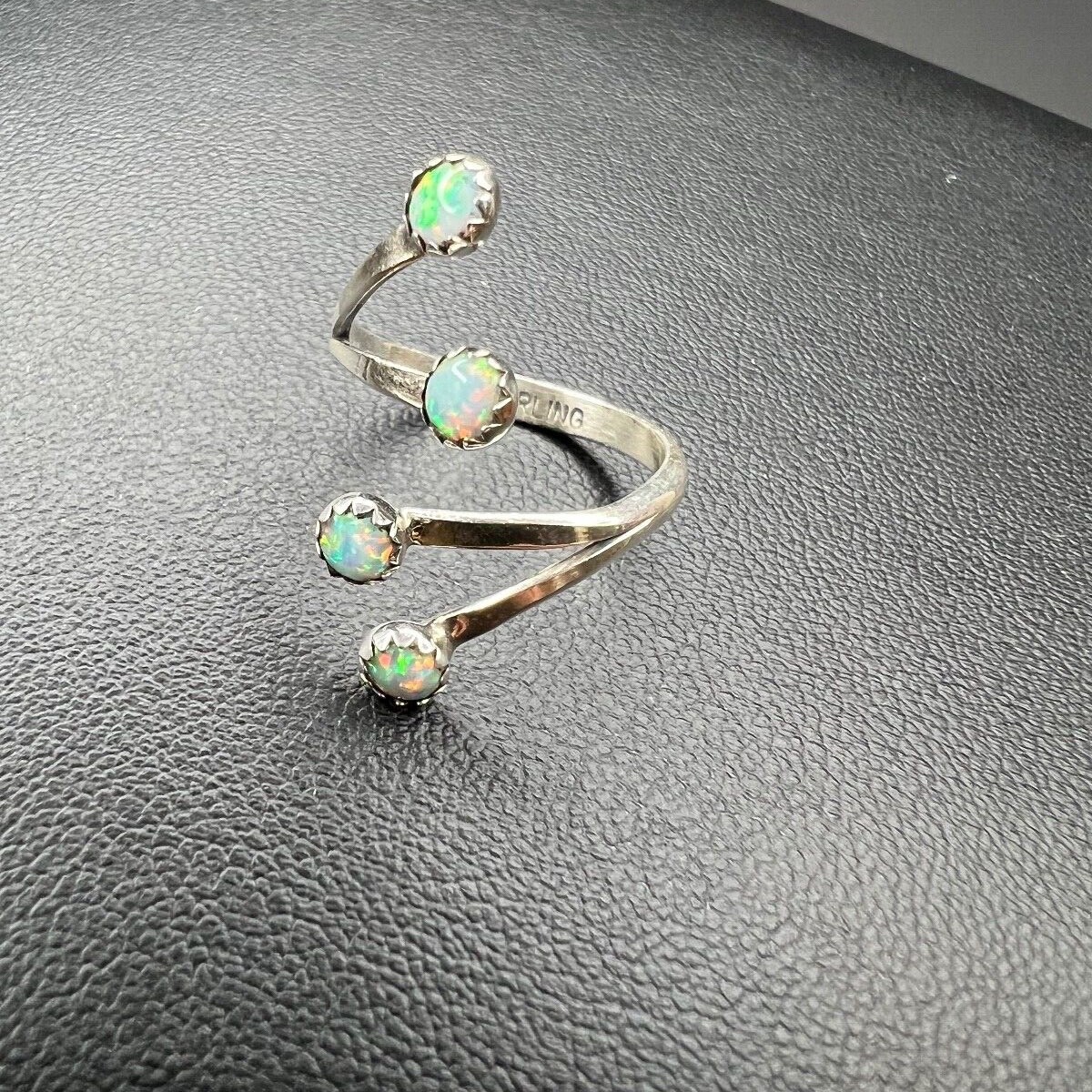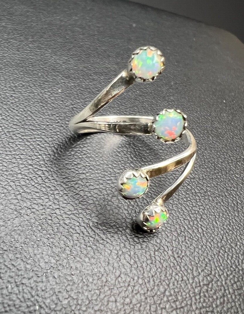 как выглядит 925 Sterling Silver Opal Bypass Ring Size 6 In Excellent Condition фото