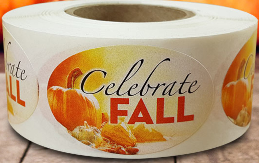 как выглядит CELEBRATE FALL LABELS 500 PER ROLL GREAT STICKERS 1.25" X 2" фото