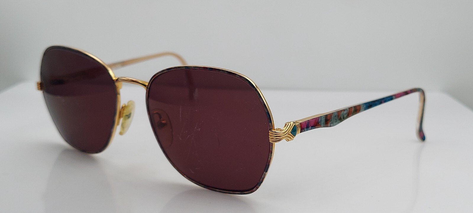 как выглядит Vintage Joan Collins J-264 Gold Multi-color Oval Sunglasses FRAMES ONLY фото