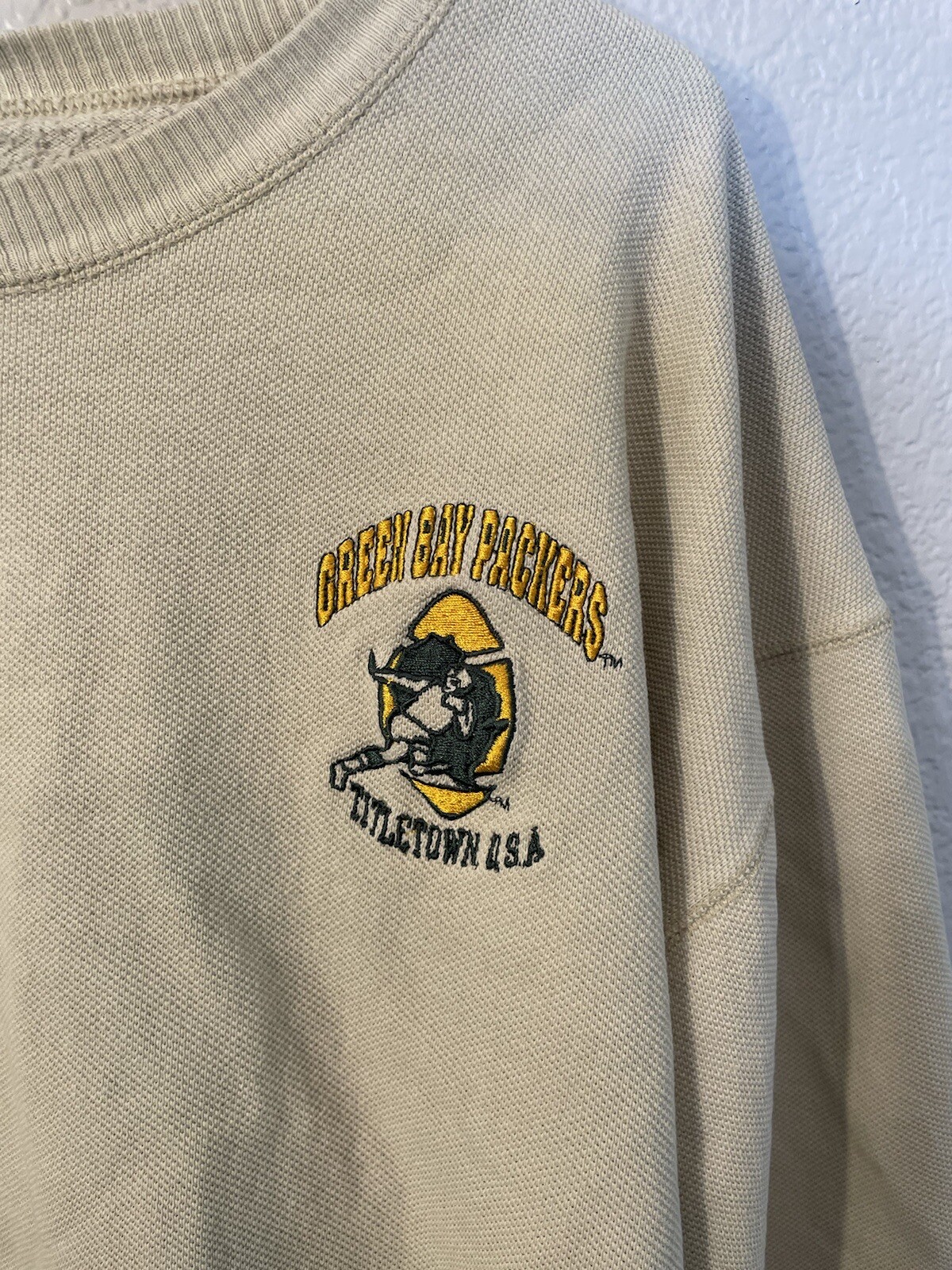 как выглядит Vintage Champion Green Bay Packers Crewneck Sweatshirt Sweater Beige Cream XL фото