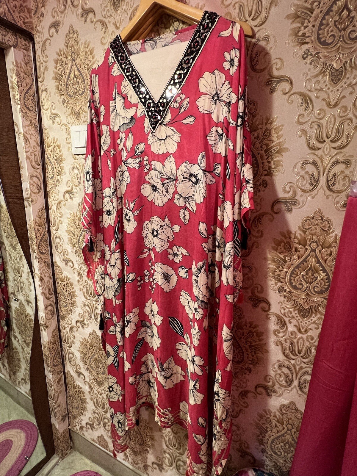 как выглядит Printed Kaftan top tunic dress with elastic waist pant partywear dress фото