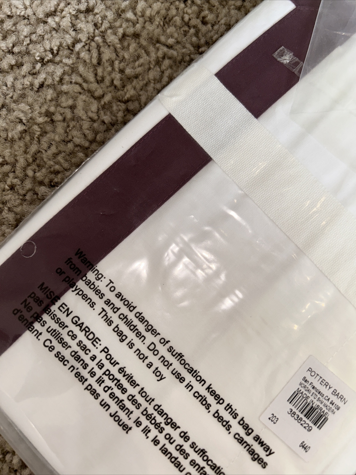 POTTERY BARN MORGAN standard SHAM MADEIRA/Dark Plum 400 tc