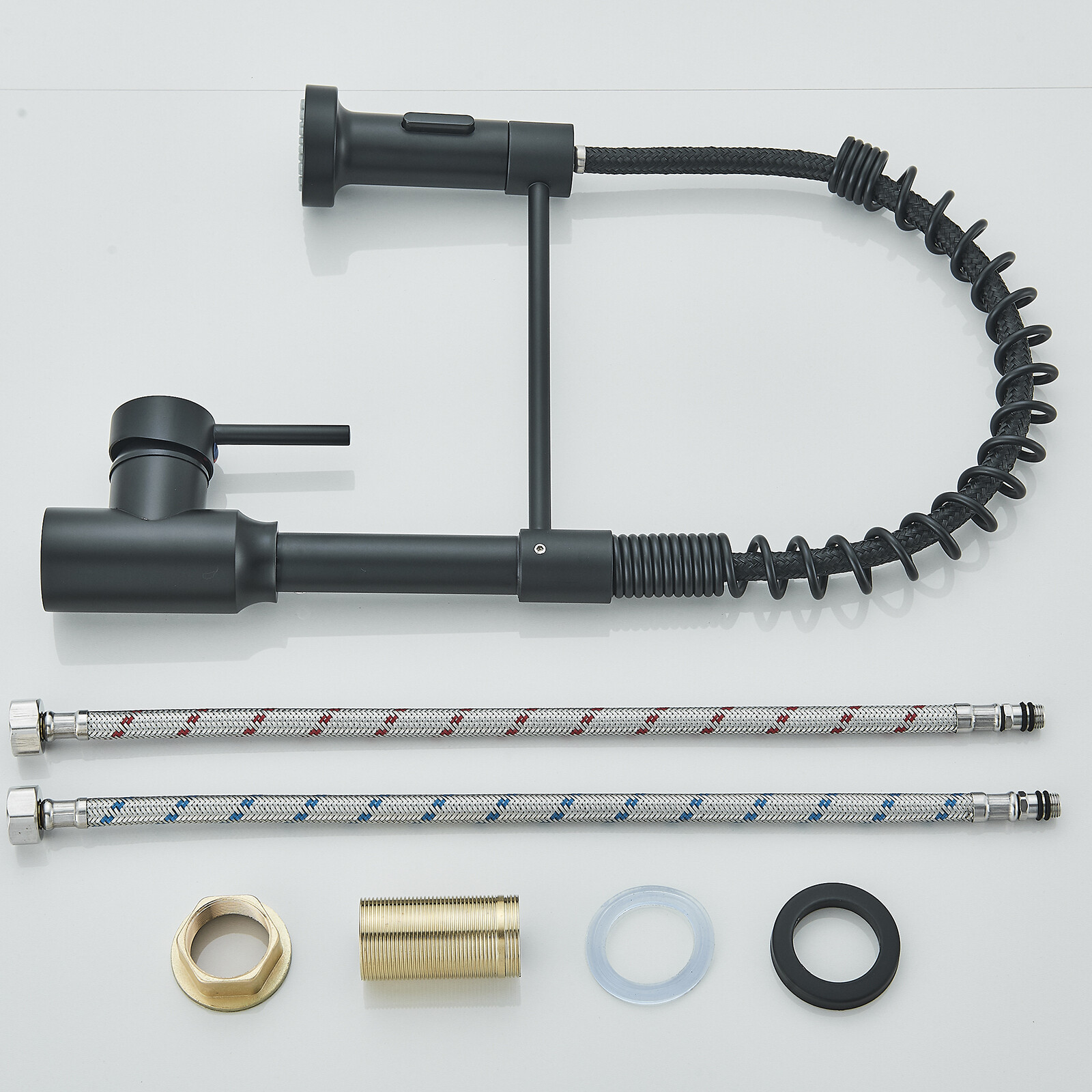Black Kitchen Faucet Sink Pull Down Sprayer Rain Waterfall Swivel Mixer Tap