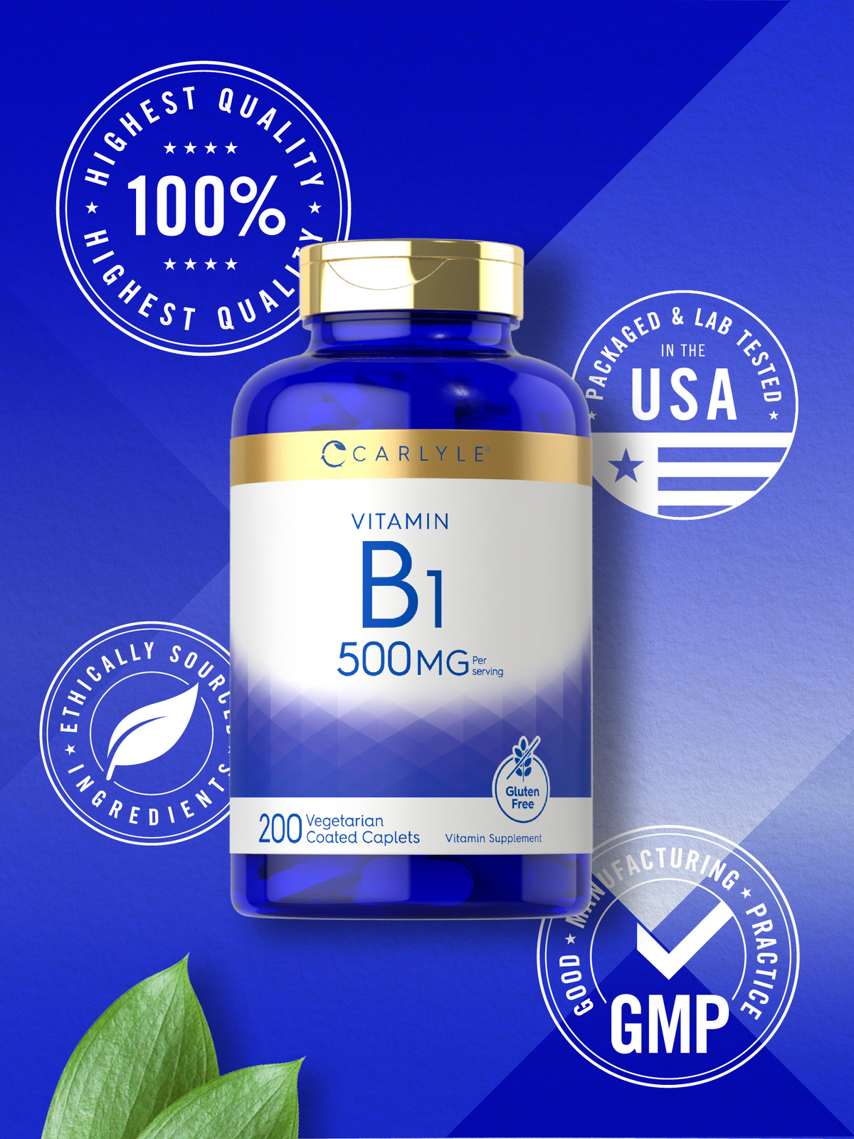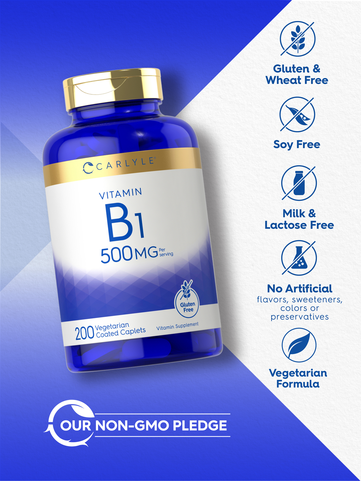 Vitamin B1 Thiamine 500mg 200 Vegetarian Caplets Non-GMO by Carlyle