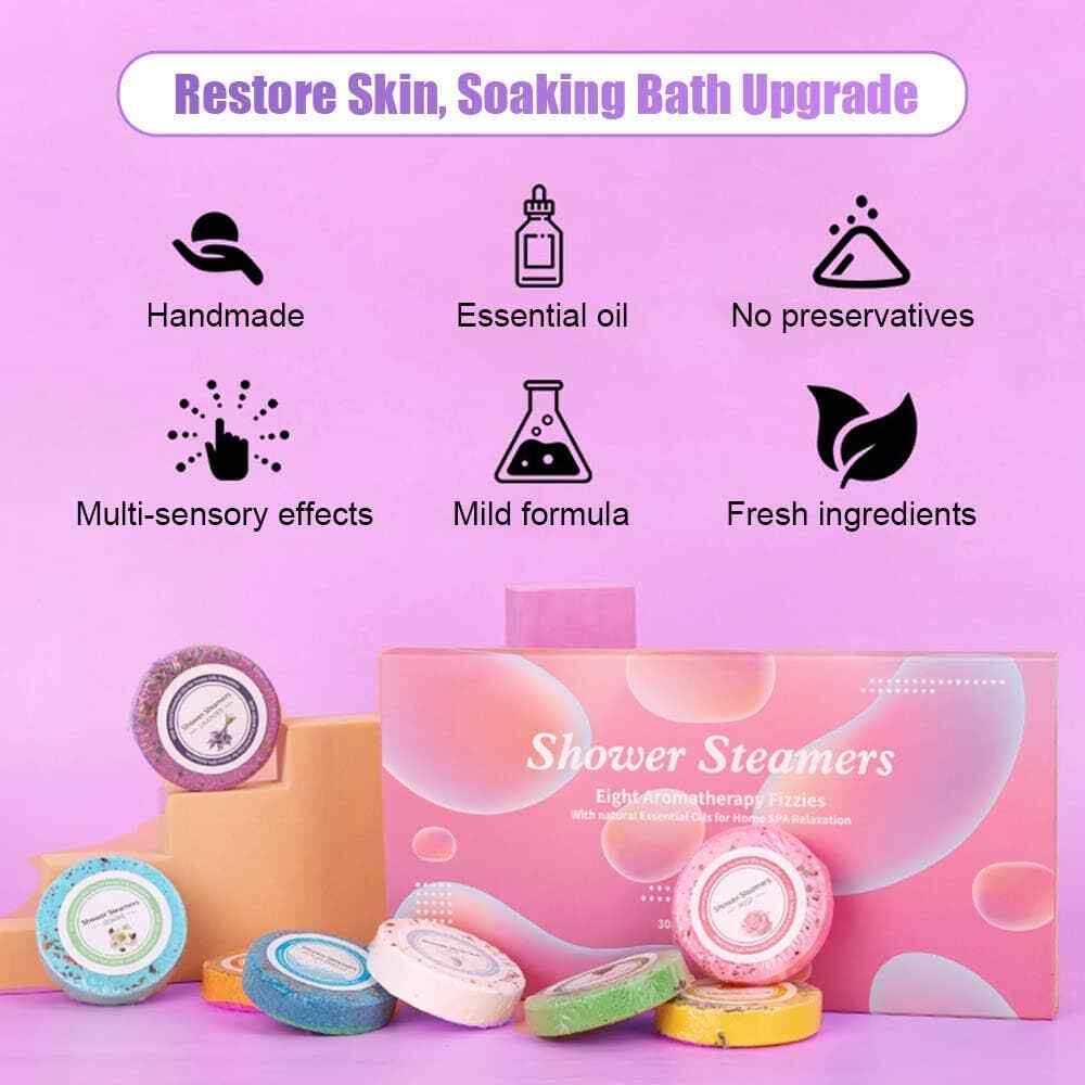 Aromatherapy Shower Steamers - 8-Pc Bath Bombs with Essential Oils
