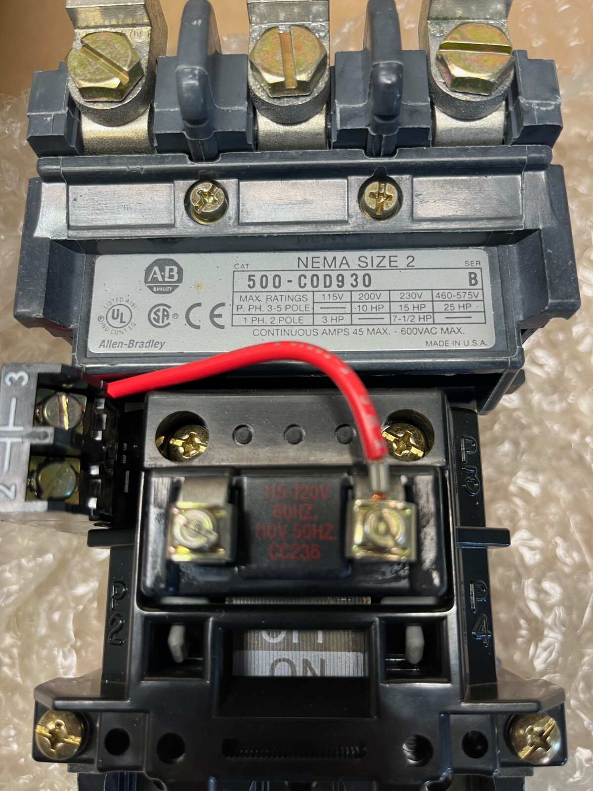 как выглядит Allen-Bradley 500-C0D930 SER B AC Contactor NEMA Size 2 RH фото