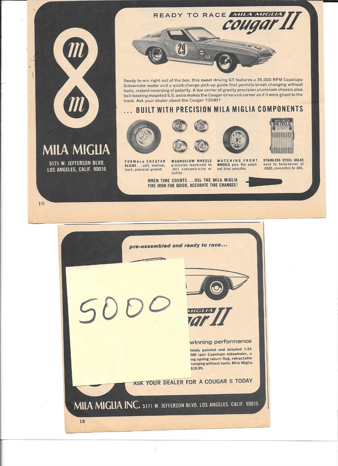 Mila Miglia Cougar II 1/24 Slot Car Vintage Magazine Advertisement PHOTOCOPY