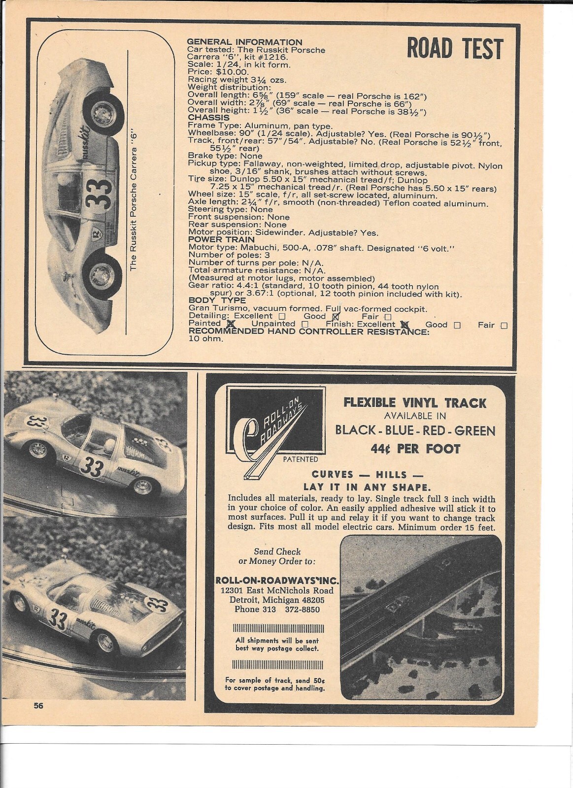 Russkit Porsche Carrera 6 1/24 Slot Car Vintage Magazine Article PHOTOCOPY