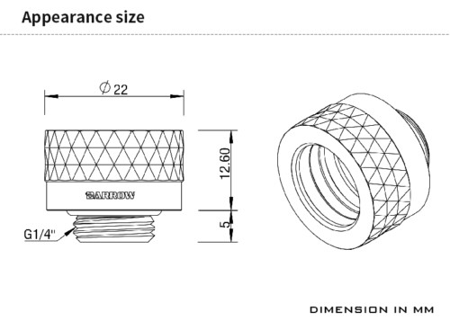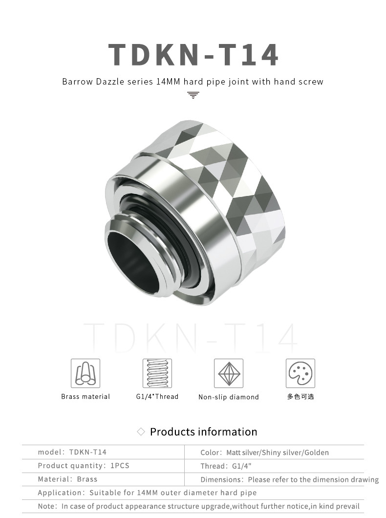 Barrow Dazzle G1/4 to 14mm Hard Tubing Compression Fitting, Gold , 8-Pack