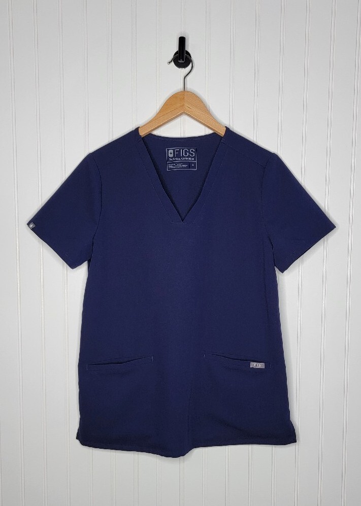 как выглядит Figs Technical Casma Scrub Top Navy Blue Womens Size Small фото