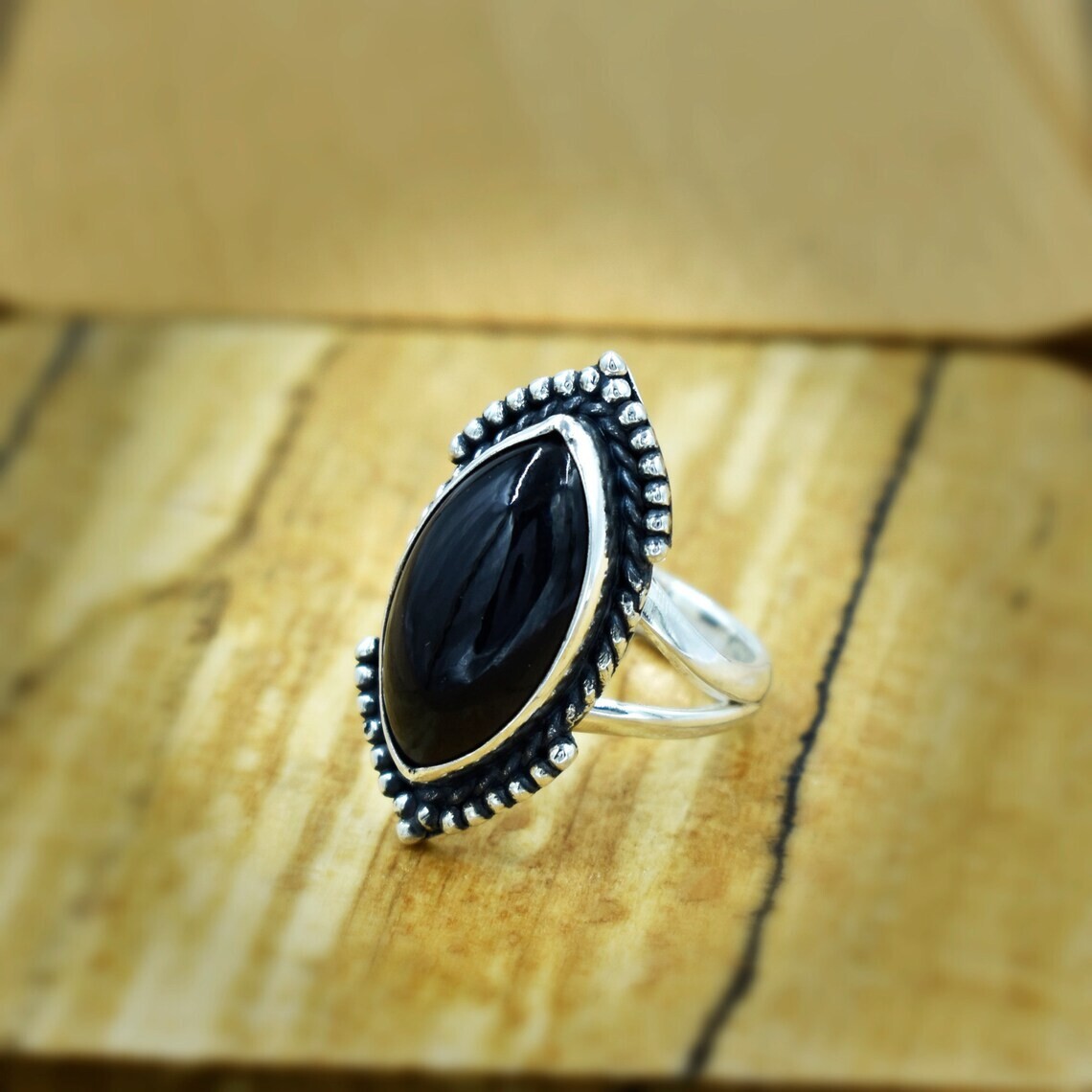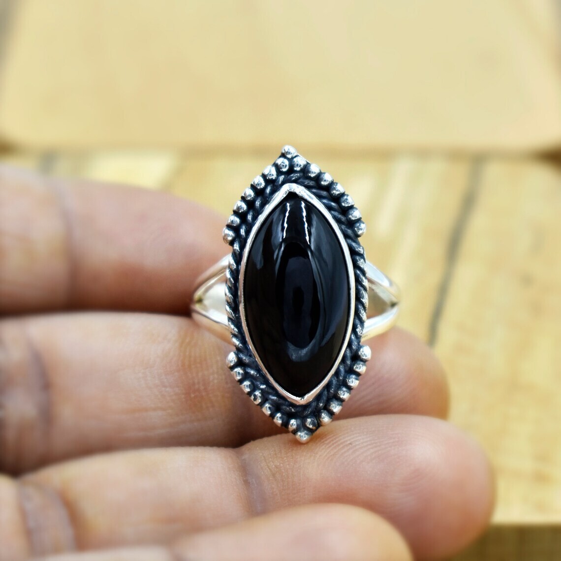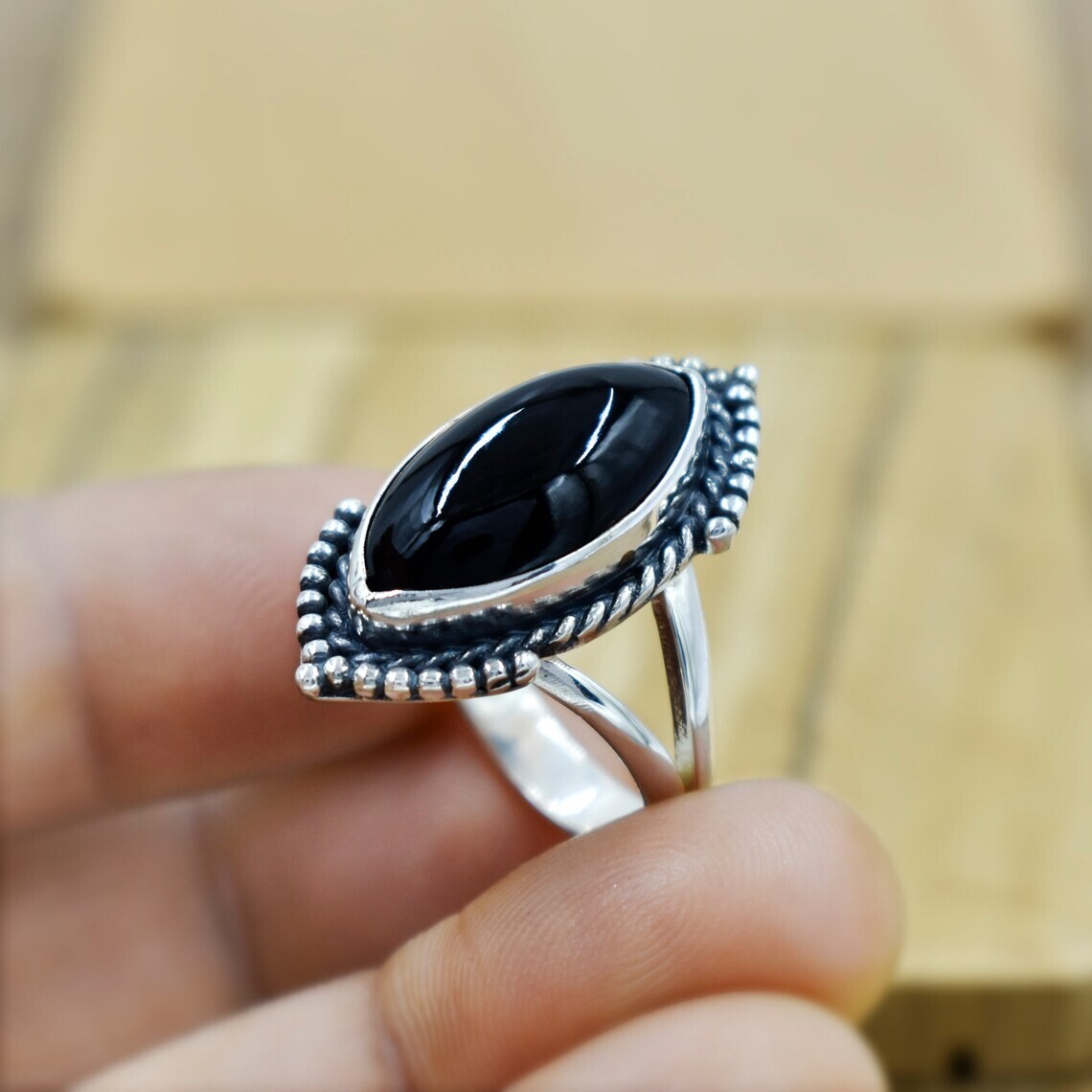 Genuine Black Onyx Ring 925 Sterling Silver Accent Ring Protection Ring Gift