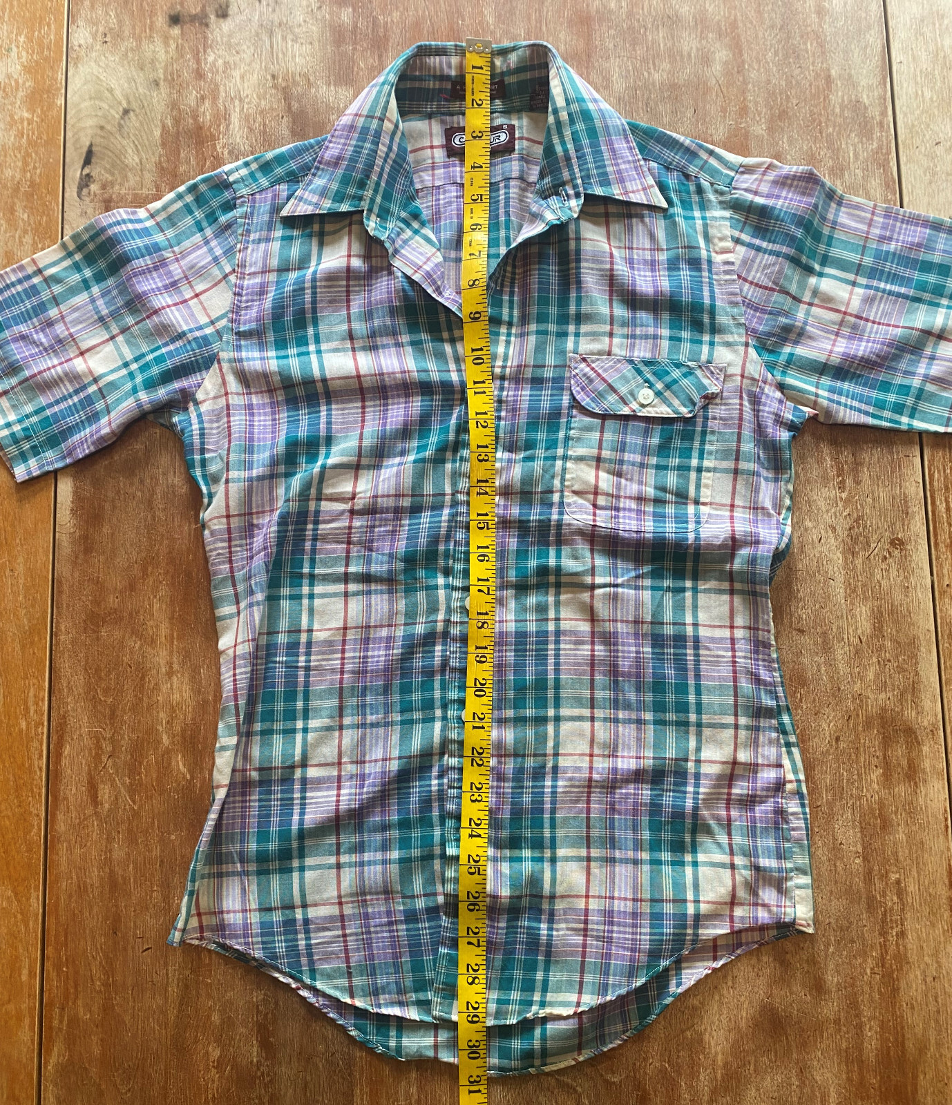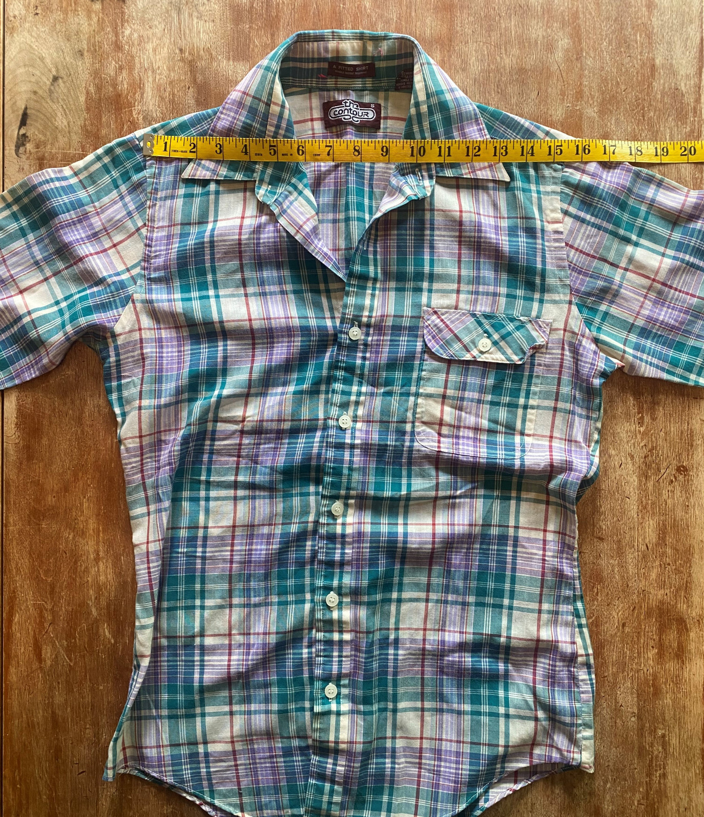 Vintage short sleeve plaid shirt contour