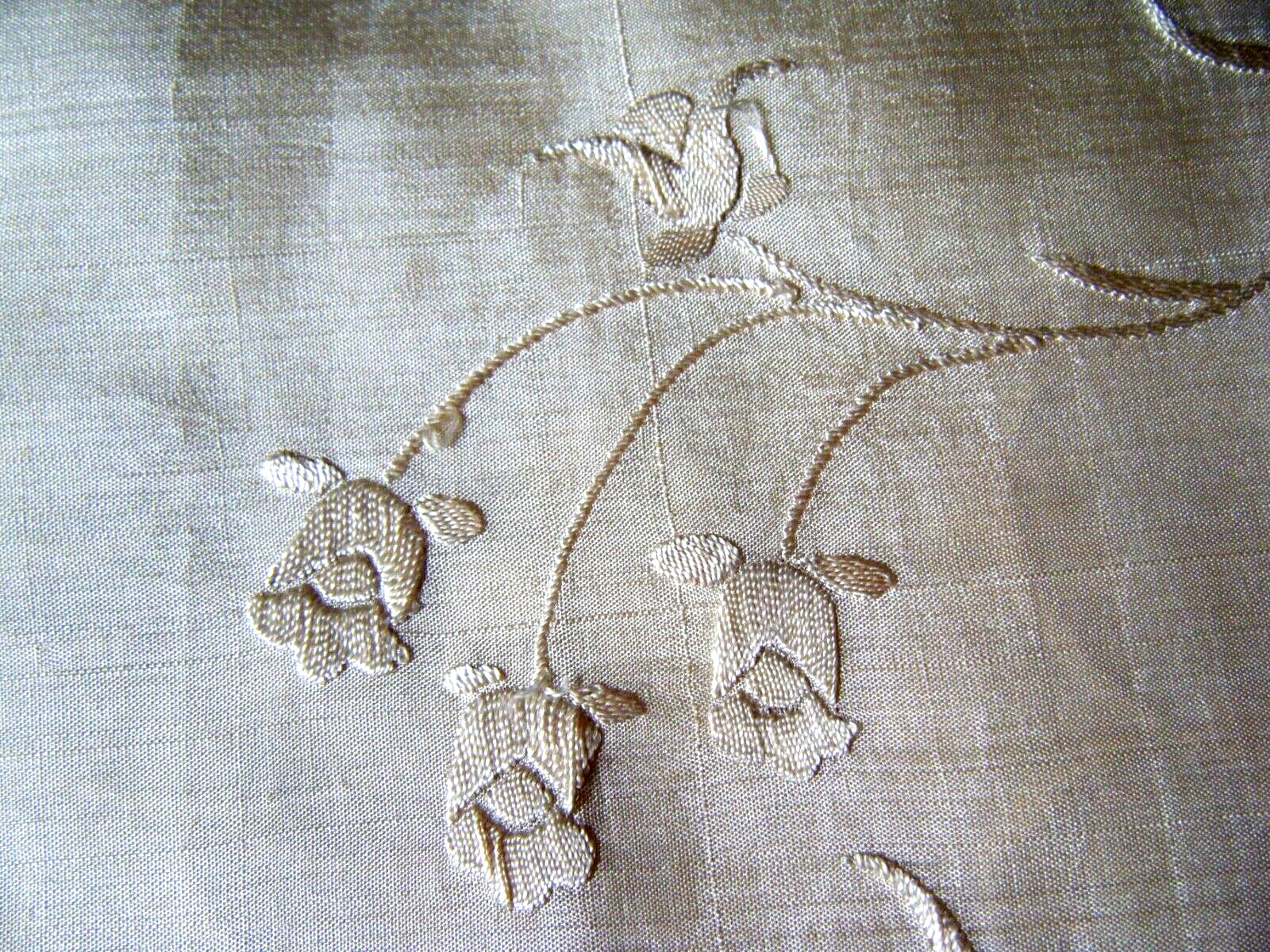 • Antique China piano shawl h embroidery cream pure silk large macrame tassels