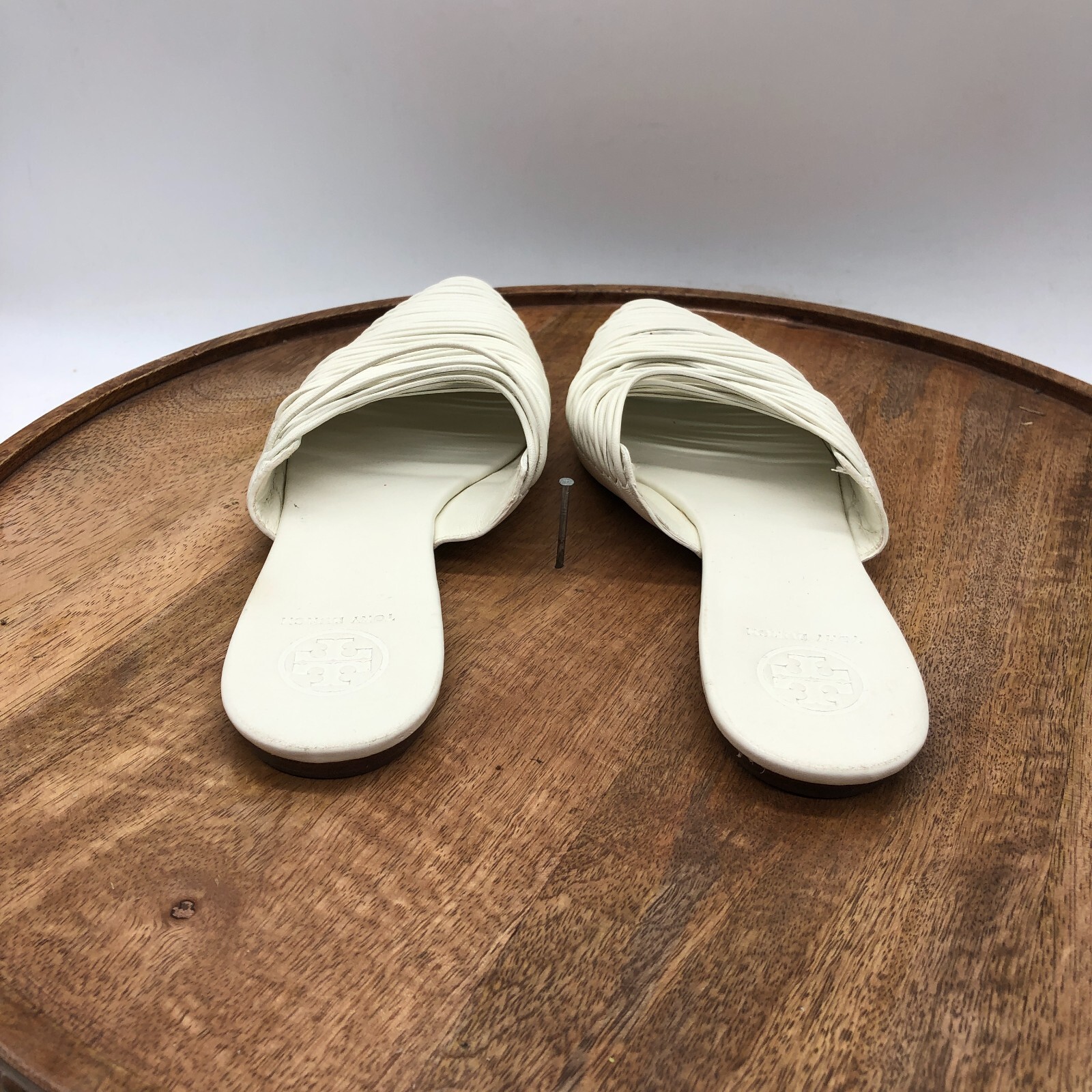 как выглядит Tory Burch Sienna Flat Slide Mules Strappy White Leather Sandals Womens Size 6 M фото