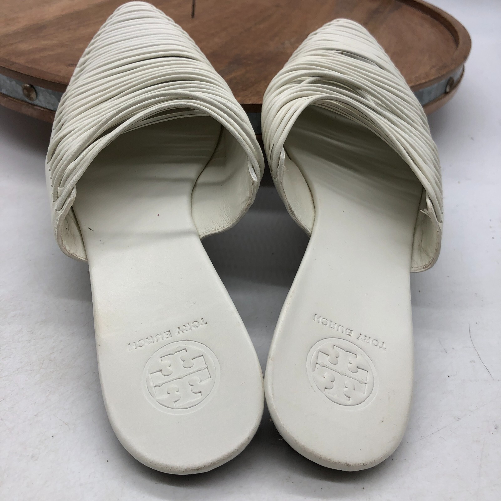 Tory Burch Sienna Flat Slide Mules Strappy White Leather Sandals Womens Size 6 M