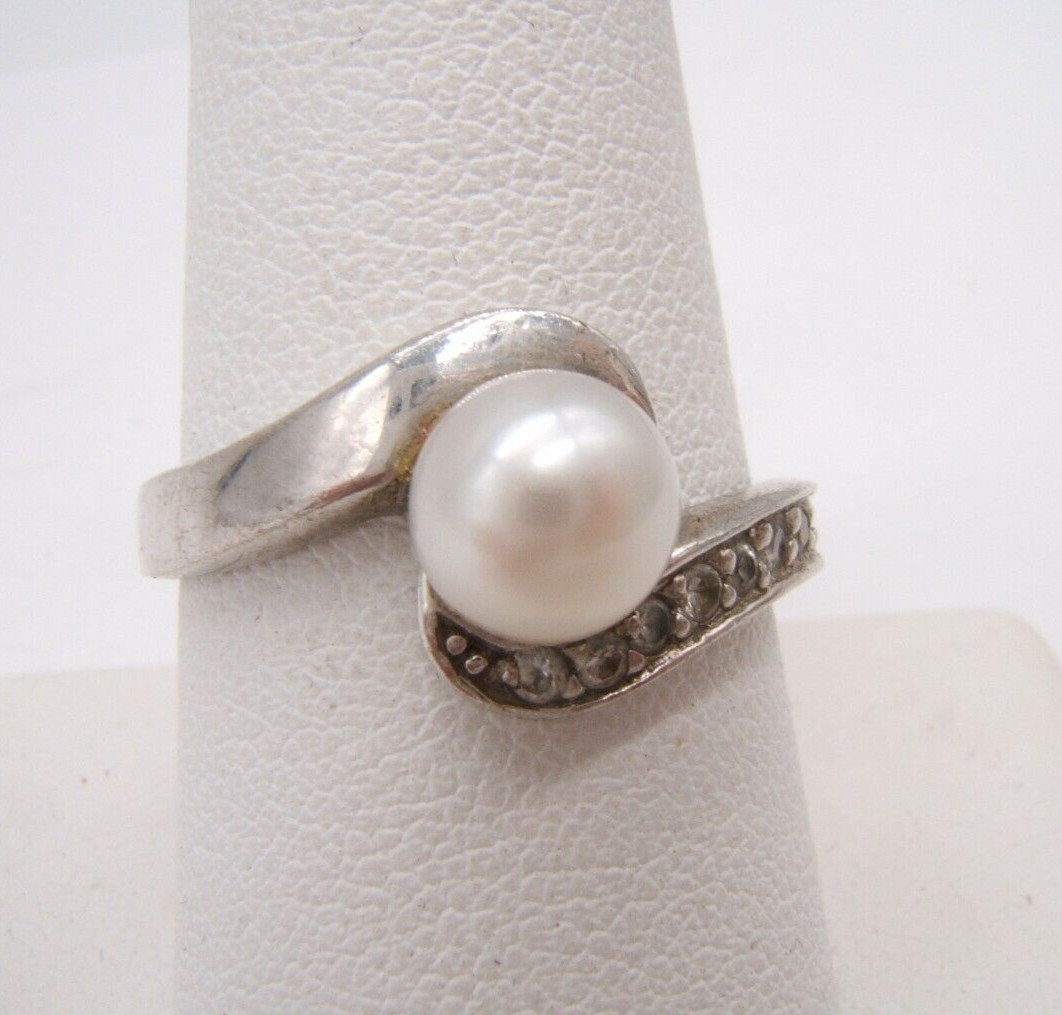 VTG NF 925 STERLING SILVER PEARL RING SIZE 9