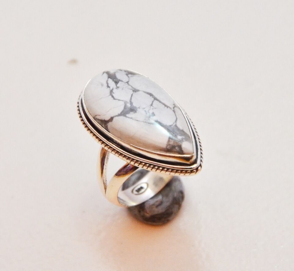 как выглядит Natural Howlite Gemstone Ring, 925 Sterling Silver Jewelry Handmade Ring.All Siz фото