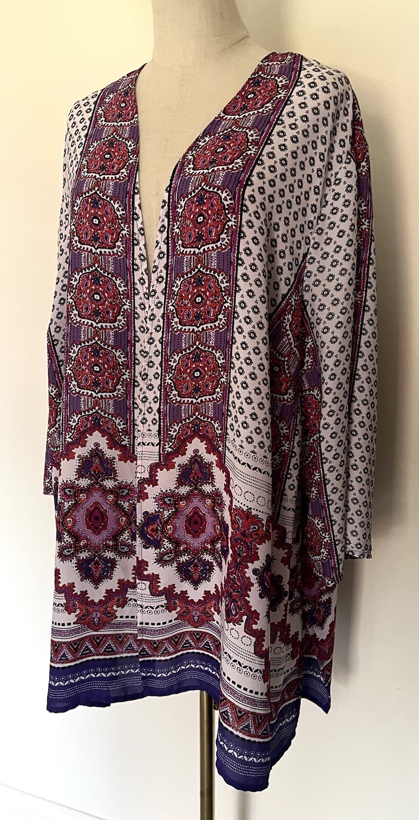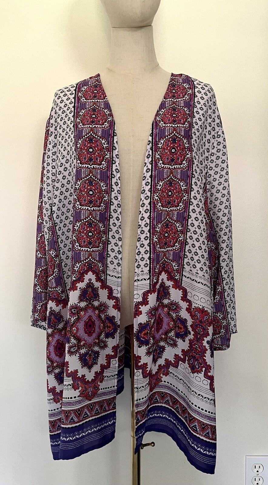 CATHERINES Plus Boho Open Front Long Lightweight Kimono Cardigan Sz 3X 26/28W