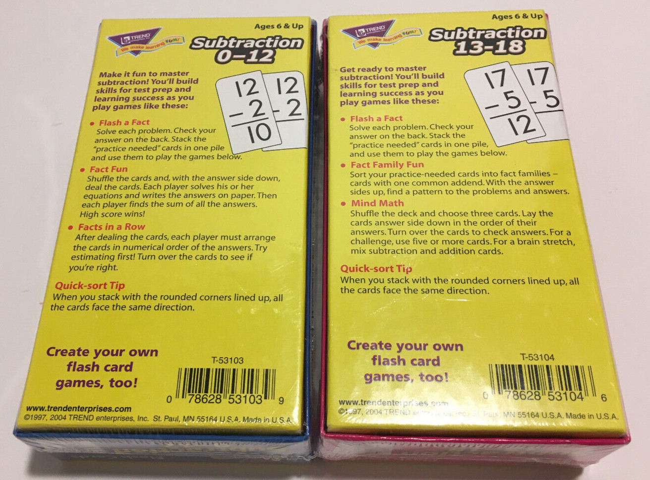 Trend Skill Drill Flash Cards Subtraction 0-12 13-18 Card Lot Set of 2