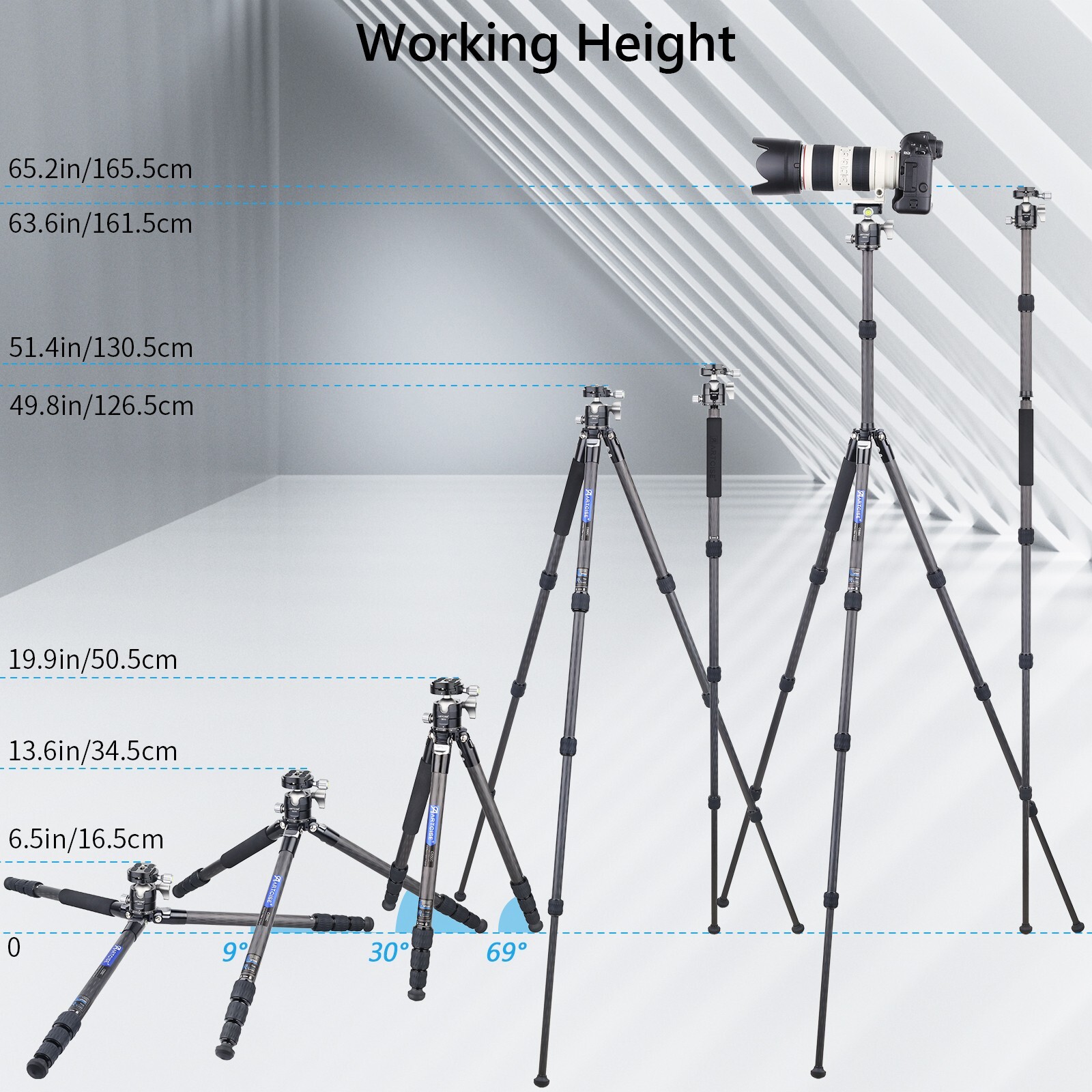 Carbon Fiber Camera Tripod Monopod with 35MM Ball Head for SLR DSLR Camera