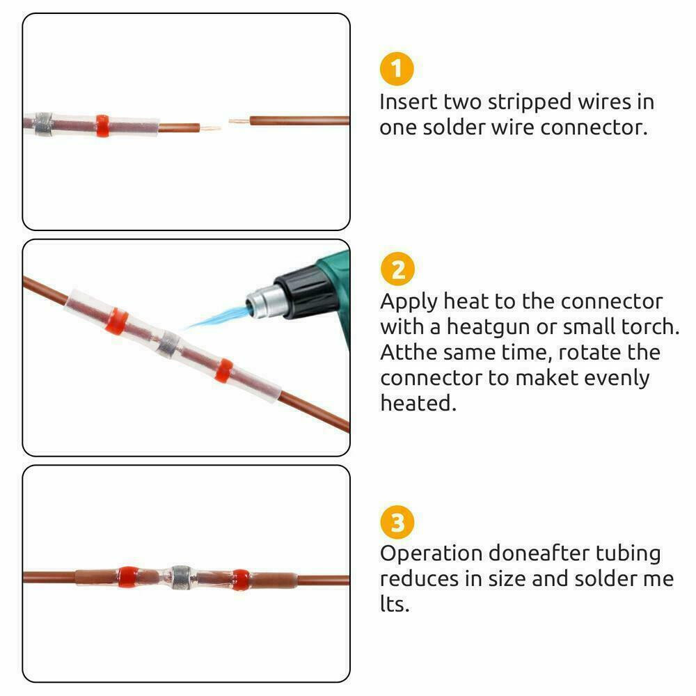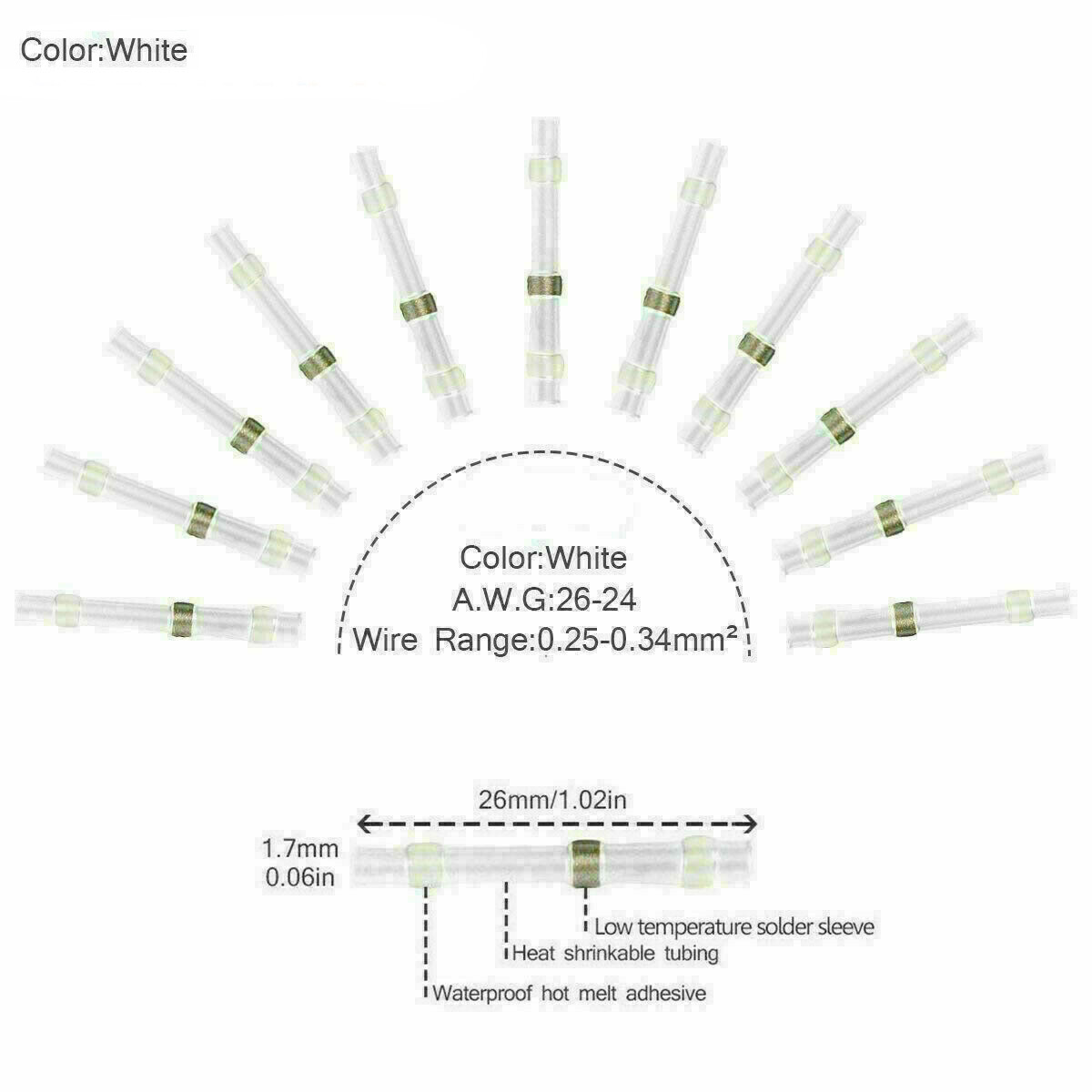 400pcs Solder Seal Sleeve Heat Shrink Butt Wire Connectors Terminals Waterproof