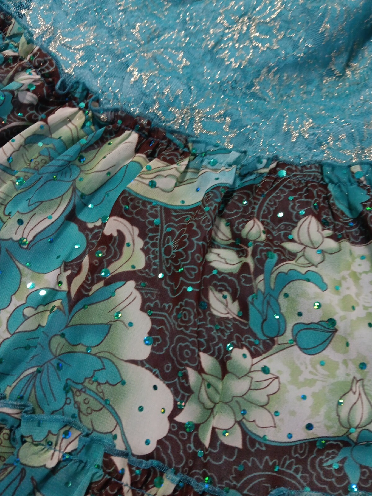 как выглядит Rampage Boho Vintage Skirt Aqua Multicolor Four Ruffled Tired Size 5 фото