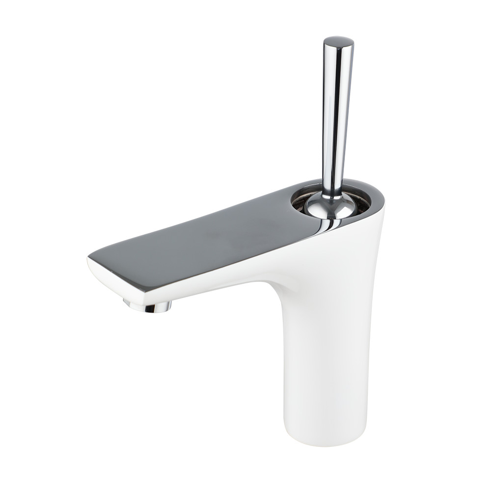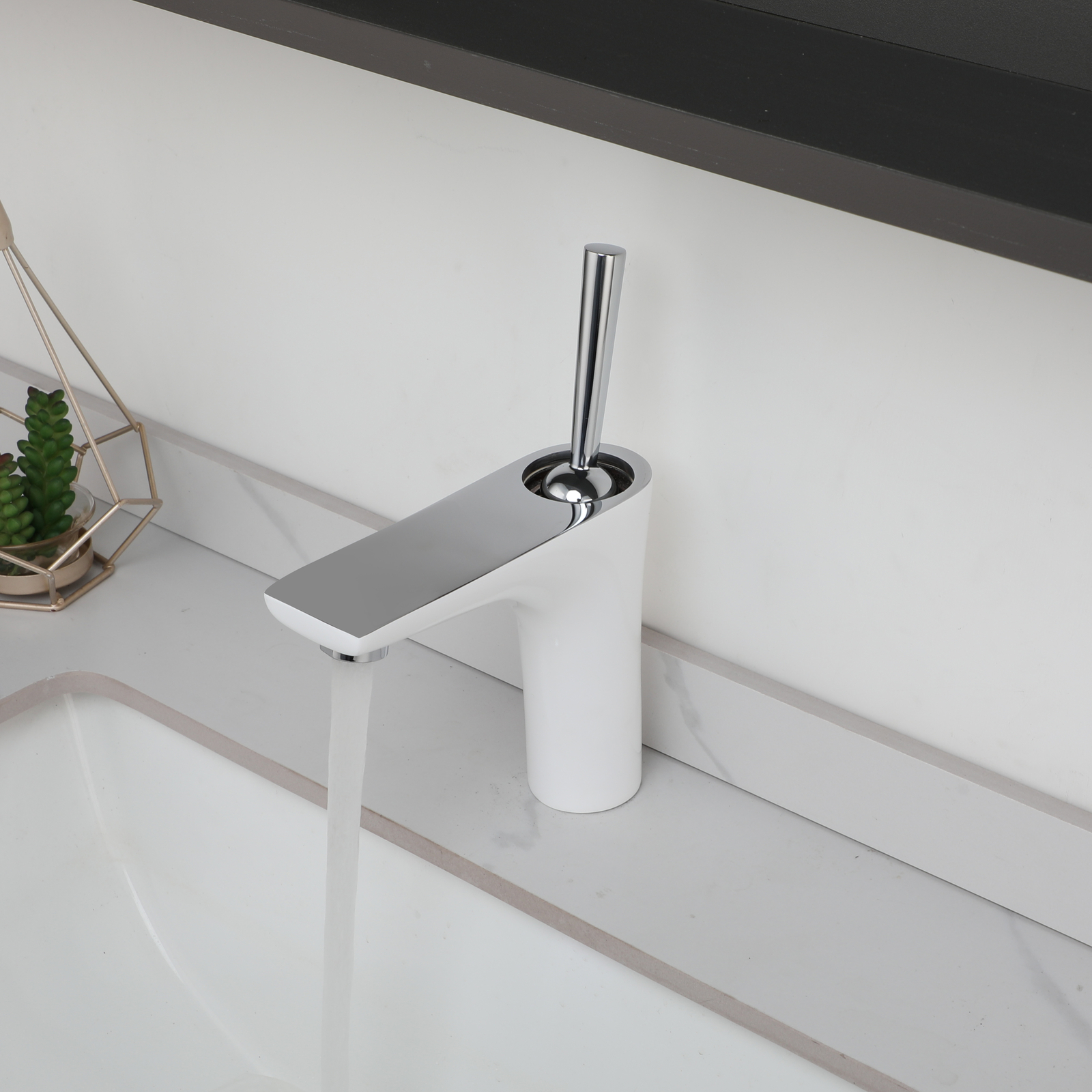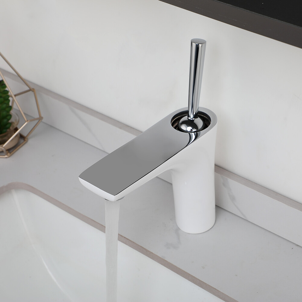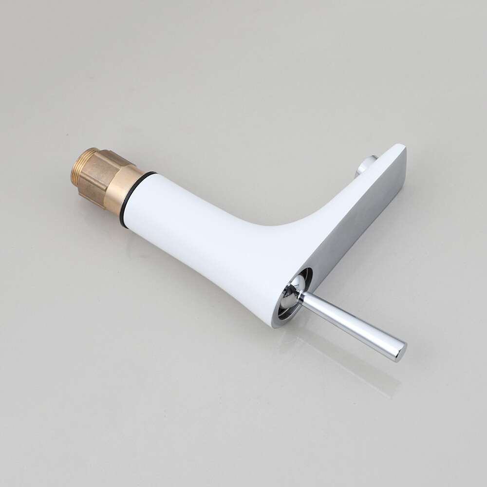White Bathroom Sink Faucet Deck Mount Single Handle Hole Brass Mixer Vanity Taps