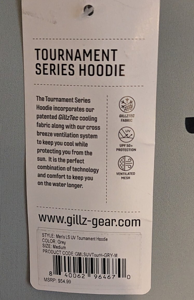 Gillz Tournament Series LS UV Fishing Pullover Hoodie Medium Gray Men's NWT
