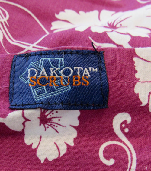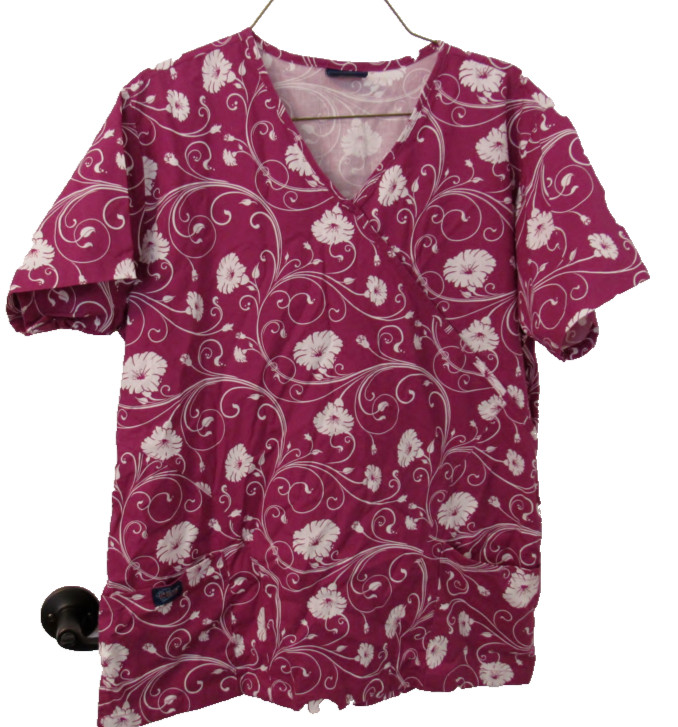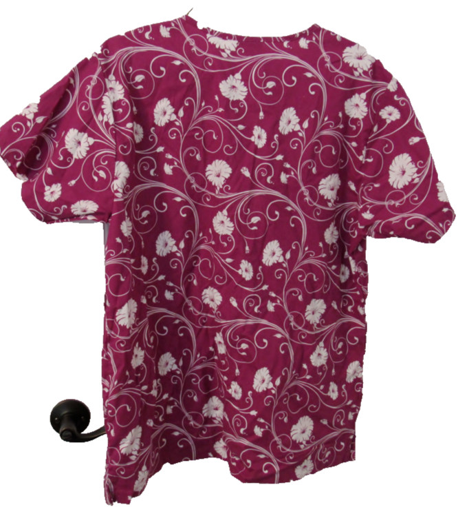 SCRUB TOP White Floral Flower with Burgendy Size X- Large Dakota Scrubs