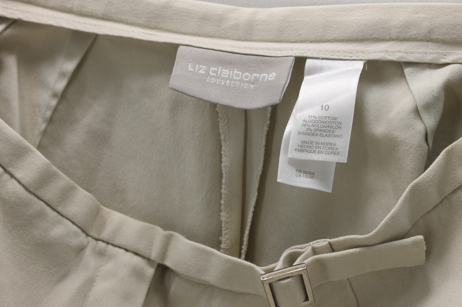 как выглядит LIZ CLAIBORNE Ladies Cotton PANTS Size 10 Color Beige Elastic Two Pockets фото
