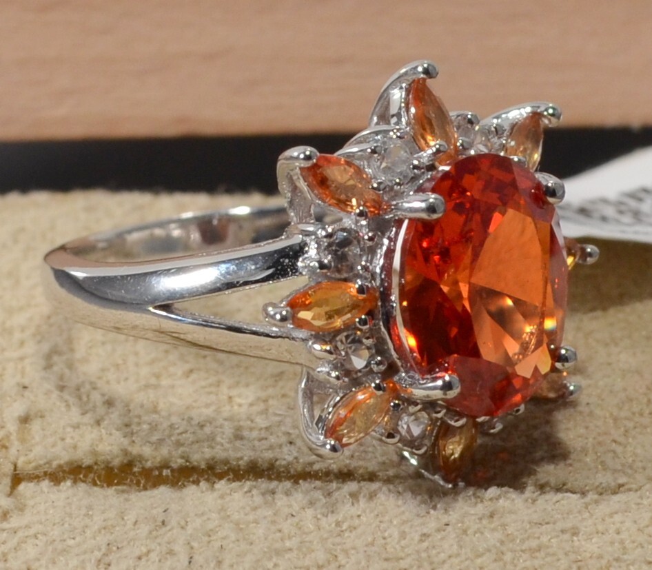 как выглядит PADPARADSCHA SAPPHIRE SYNTH - ORANGE SAPPHIRE - WHITE ZIRCON -RING SIZE 6-SILV фото