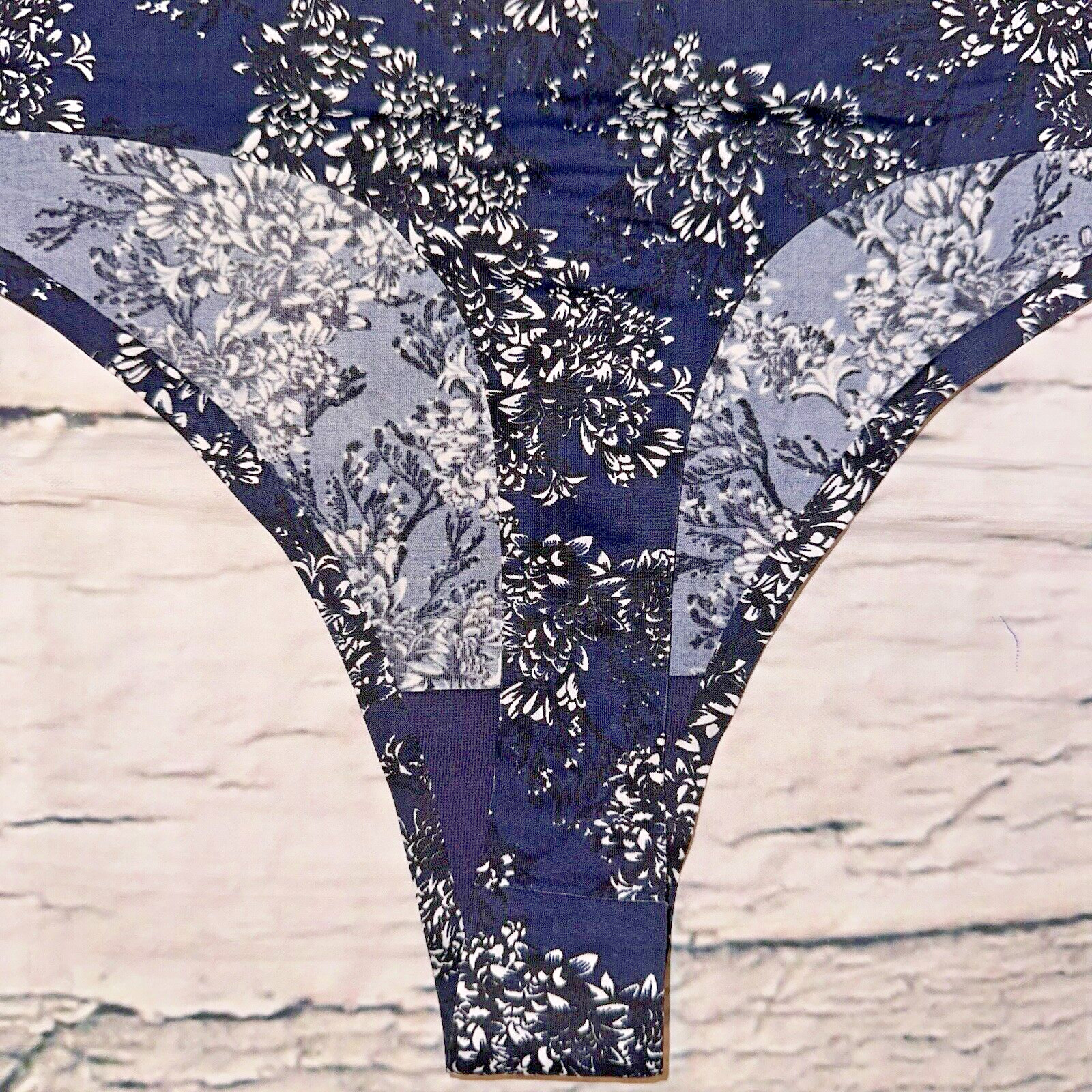 как выглядит NWT Vince Camuto Womens Thong Underwear Navy Blue White Floral Print Size L фото