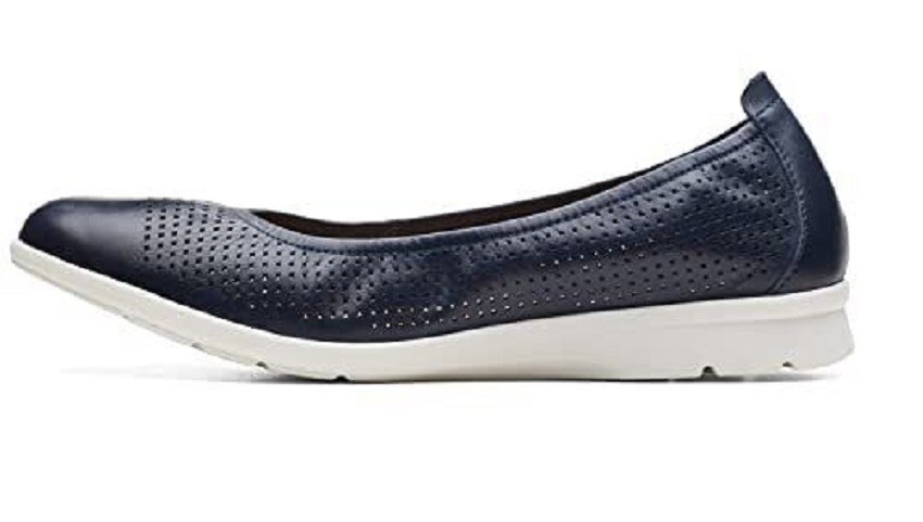 как выглядит Clarks Jenette Ease Ballet Flat Navy Leather 8-M 8007 NEW фото