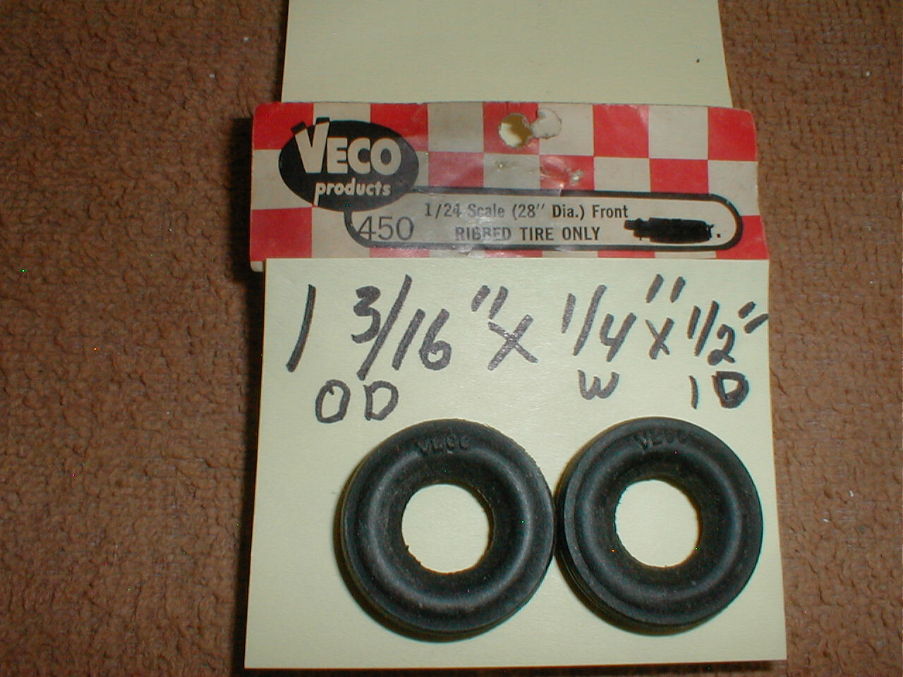 1 PR Racing Tires by VECO Products 1 3/16 X 1/4 VINTAGE 1/32 Slot Car 450