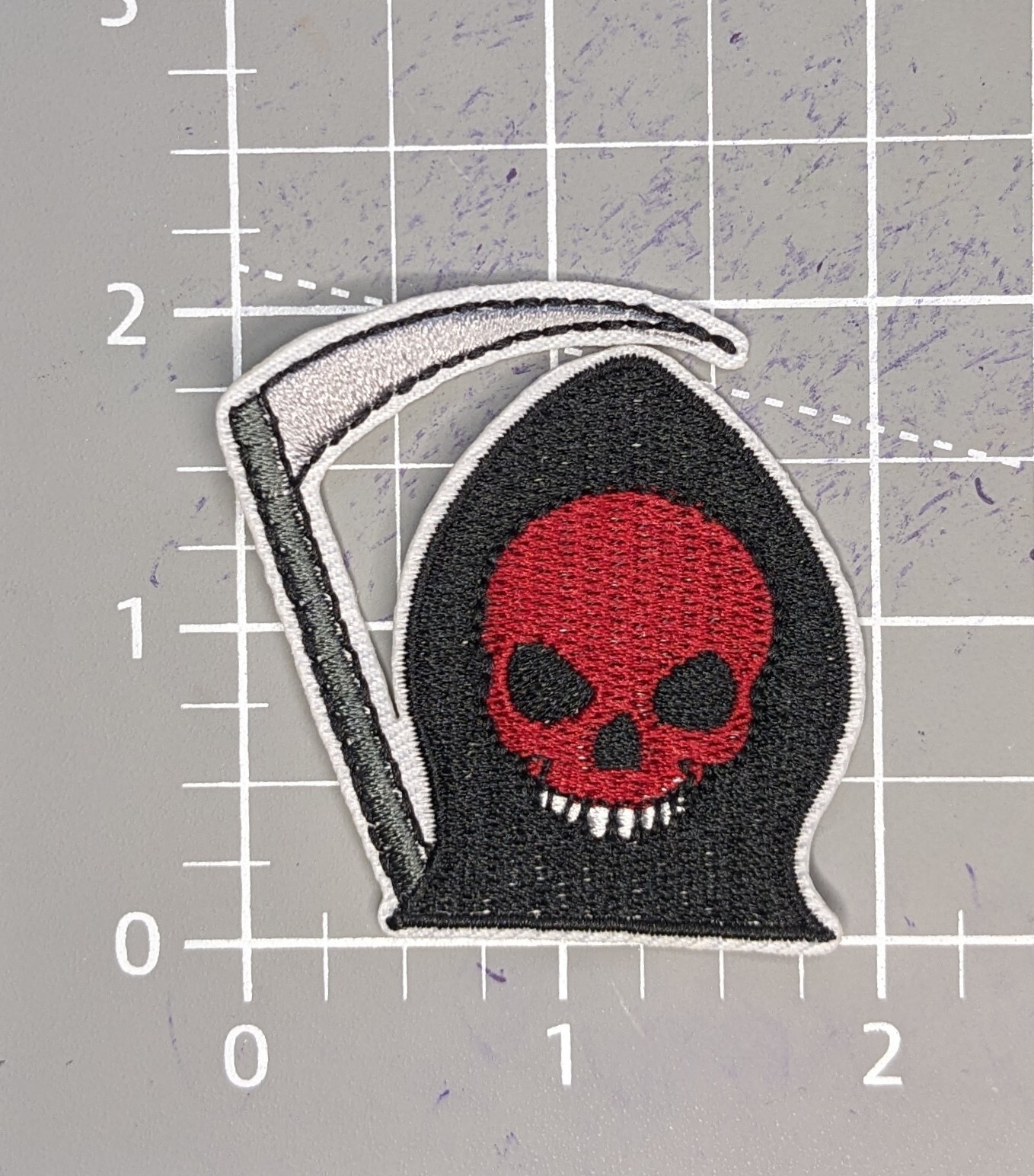 Smiley Red Skull Grim Reaper Patch Goth Death Punk Bike Embroidered Iron On 2x2