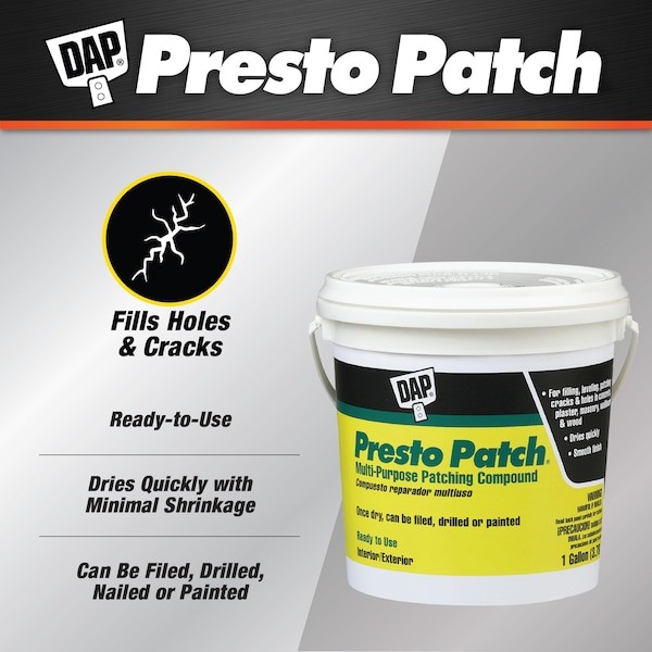 Dap 58555 Patching Compound, 1 Gal, Pail, Off White, Presto Patch