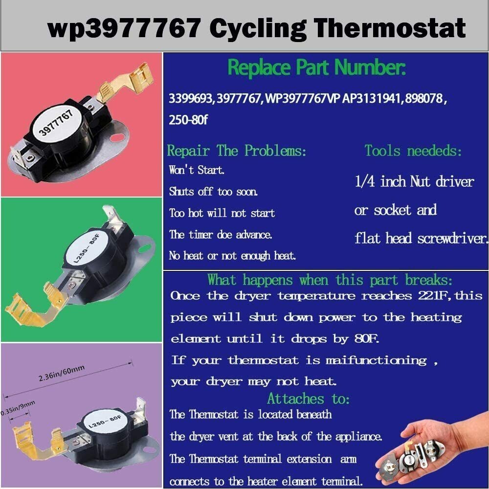 3387134 Dryer Thermostat 3977393,3392519,3977767 Thermal Fuse Kit for whirlpool