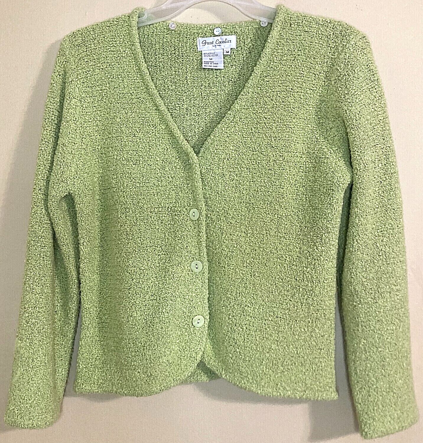 как выглядит Vtg 90s Great Cavalier Womens Lime Green Cardigan Sweater Detachable Faux Fur M фото