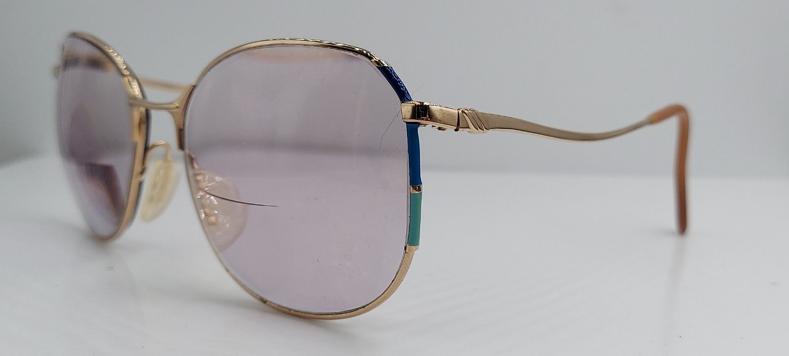 как выглядит Vintage Zeiss R 6660 Gold Blue Oval Metal Sunglasses Germany FRAMES ONLY фото