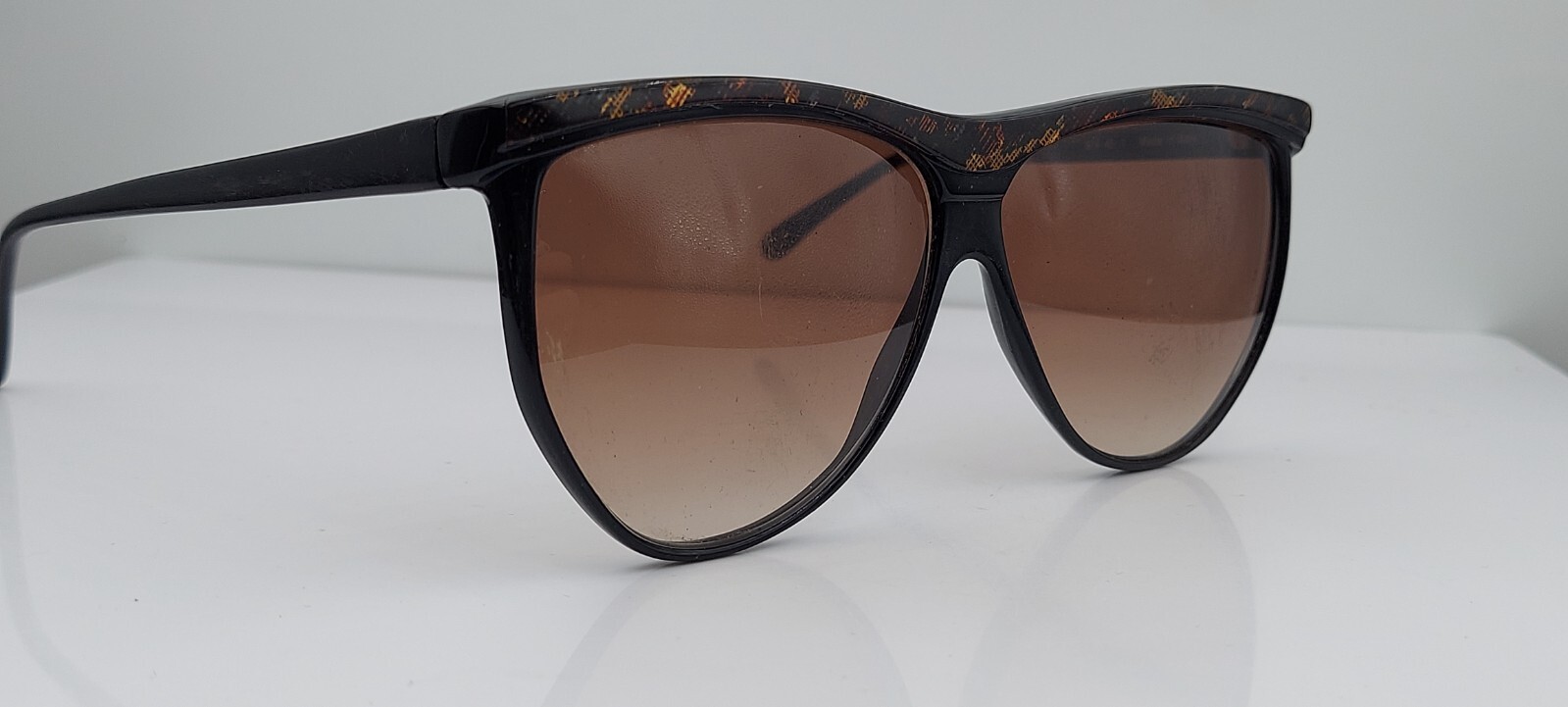Vintage Ellen Tracy Black Brown Oval Sunglasses Italy FRAMES ONLY