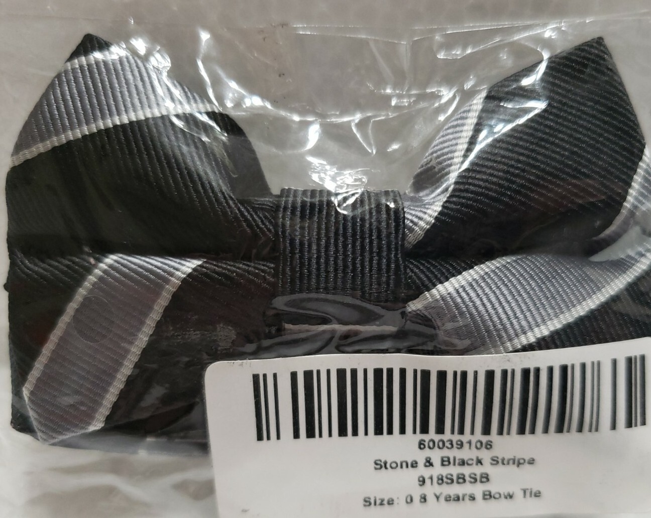 Children's Bow tie 0-8 Years Stone grey Black Stripe New 3.5 Wide