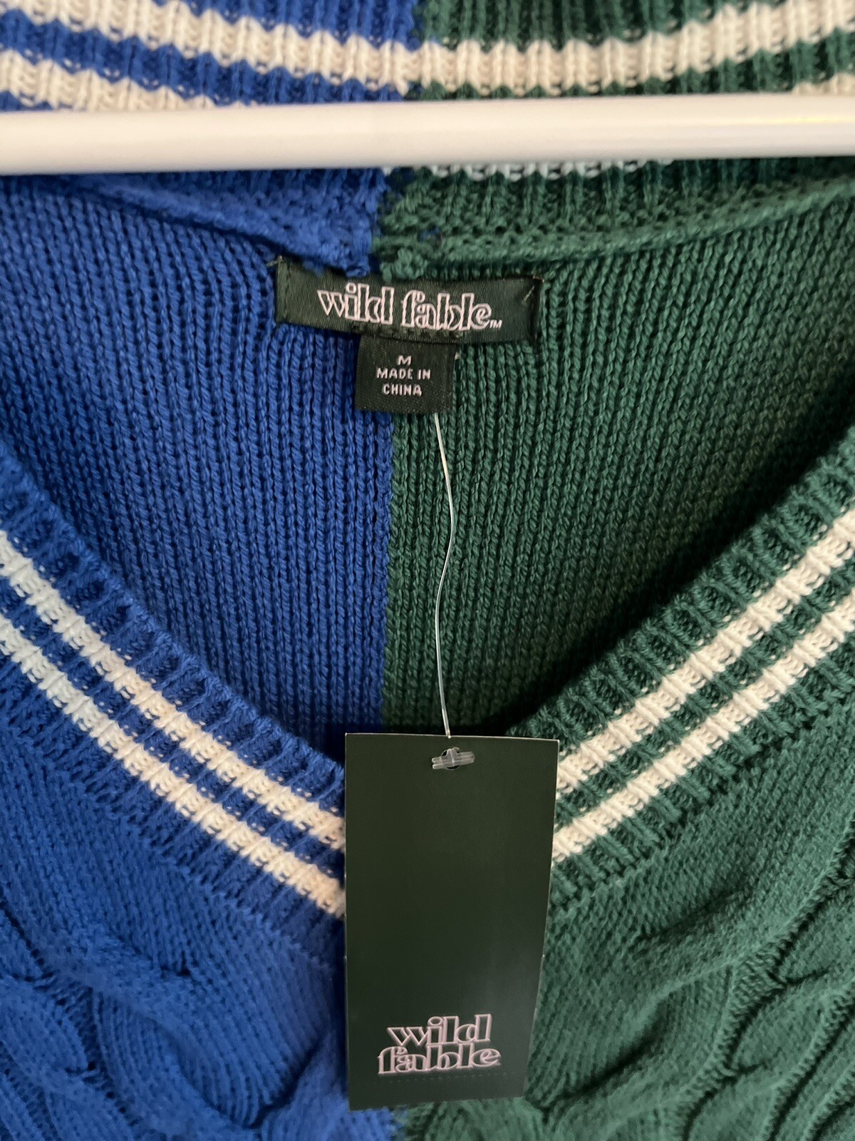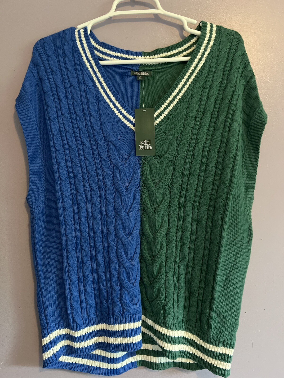 как выглядит Wild Fable Womens Oversized Sweater Vest Navy/Green Spliced Size Medium фото