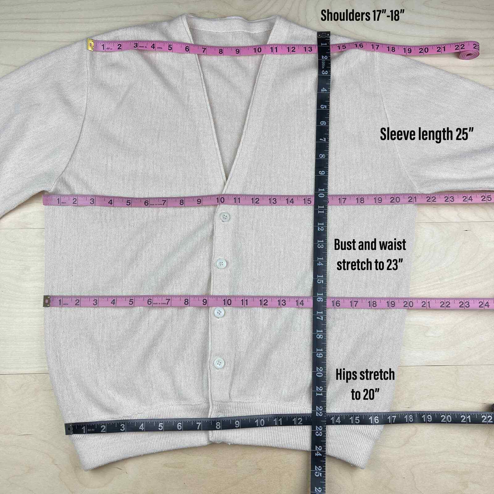 как выглядит Vintage 1970s Beige V-Neck Acrylic Cardigan - L/XL фото